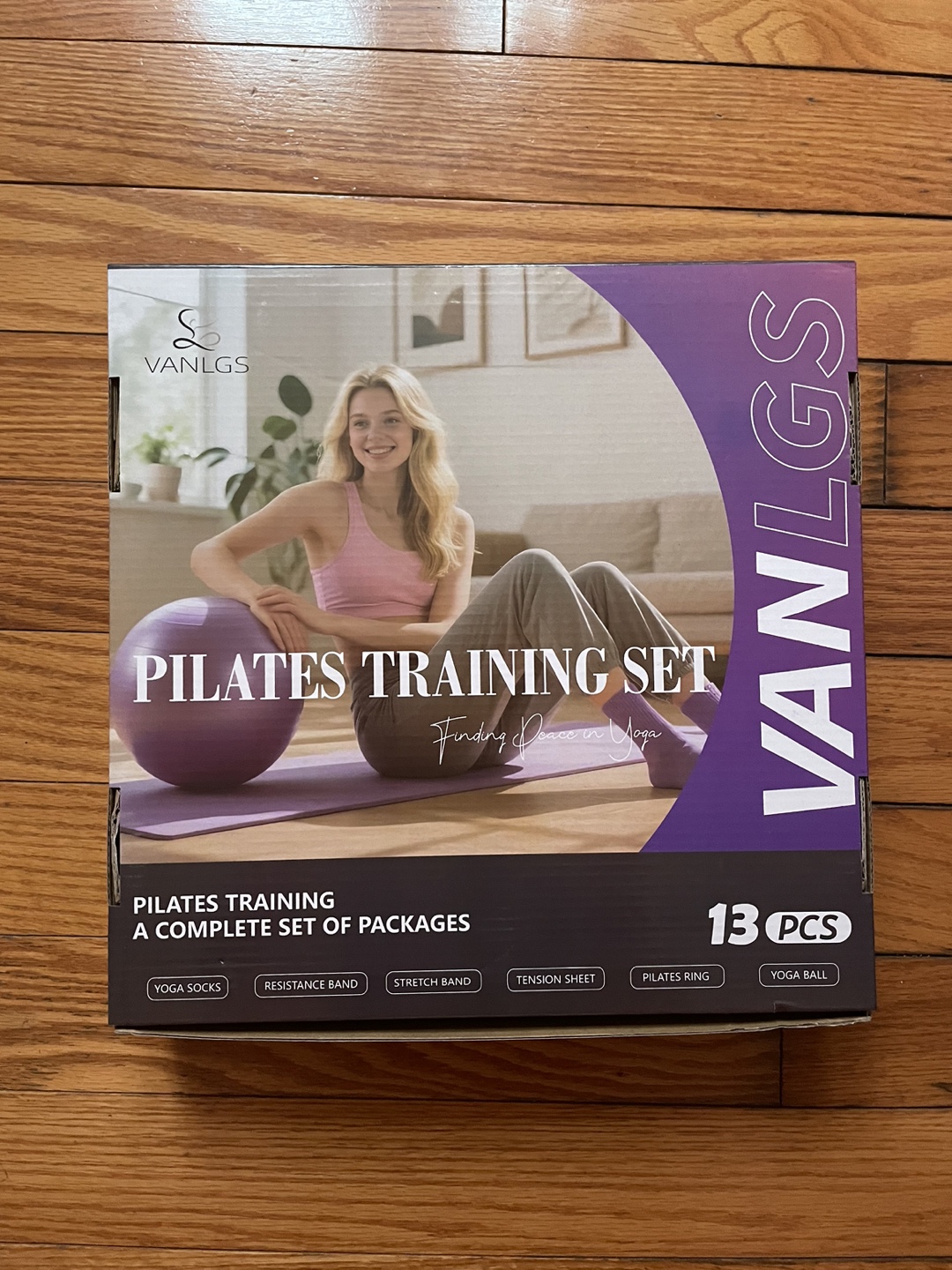 This 13-piece home pilates equipment set includes a 10" yoga ball, resistance bands, a pilates ring, and yoga socks. It's designed for home workouts. Includes a storage bag. PS:This is the final sale. (No exchanges or returns)100% brand new product. Excellent price. No bargaining accepted. First come, first served.