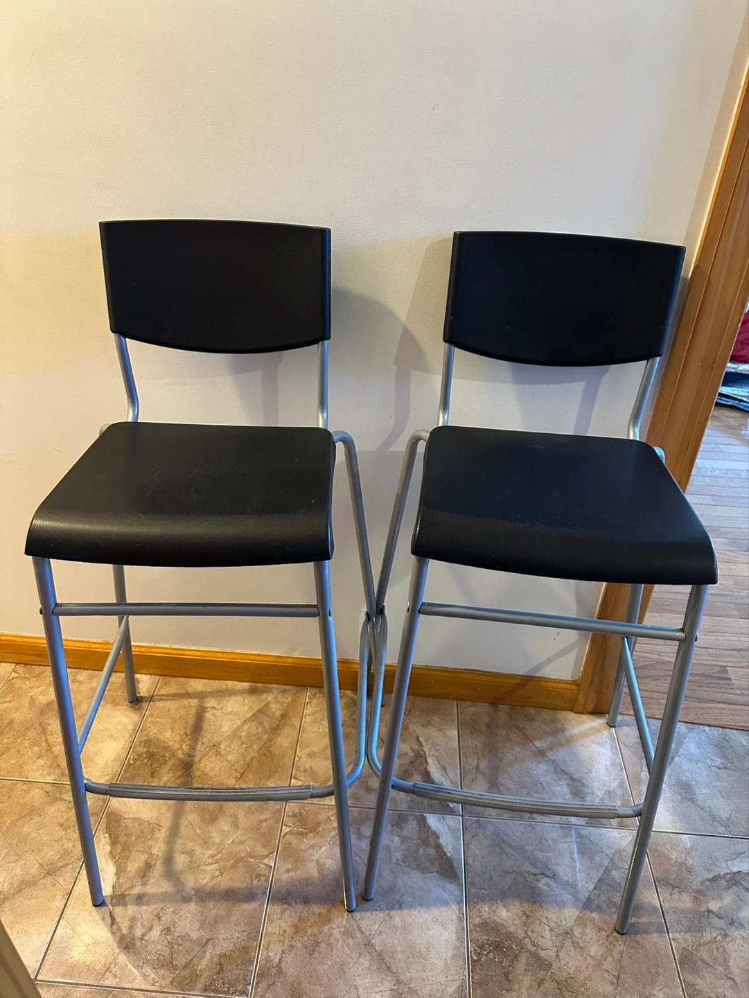 Buy & SellPair of Black and Silver Bar StoolsPair of Black and Silver Bar Stools$10Set of two bar stools. Black plastic seats and silver metal legs. Simple modern design. Good condition.WHERE TO MEETCheck LocationView MapSELLERRafalRidgewood705 reviews3 chats·2 favorites·41 viewsSEND CHAT TO SELLERHi Rafal! I’m interested in your listing.Hi Rafal! I’m interested in your listing.Get the Karrot app to chatSign In to chat