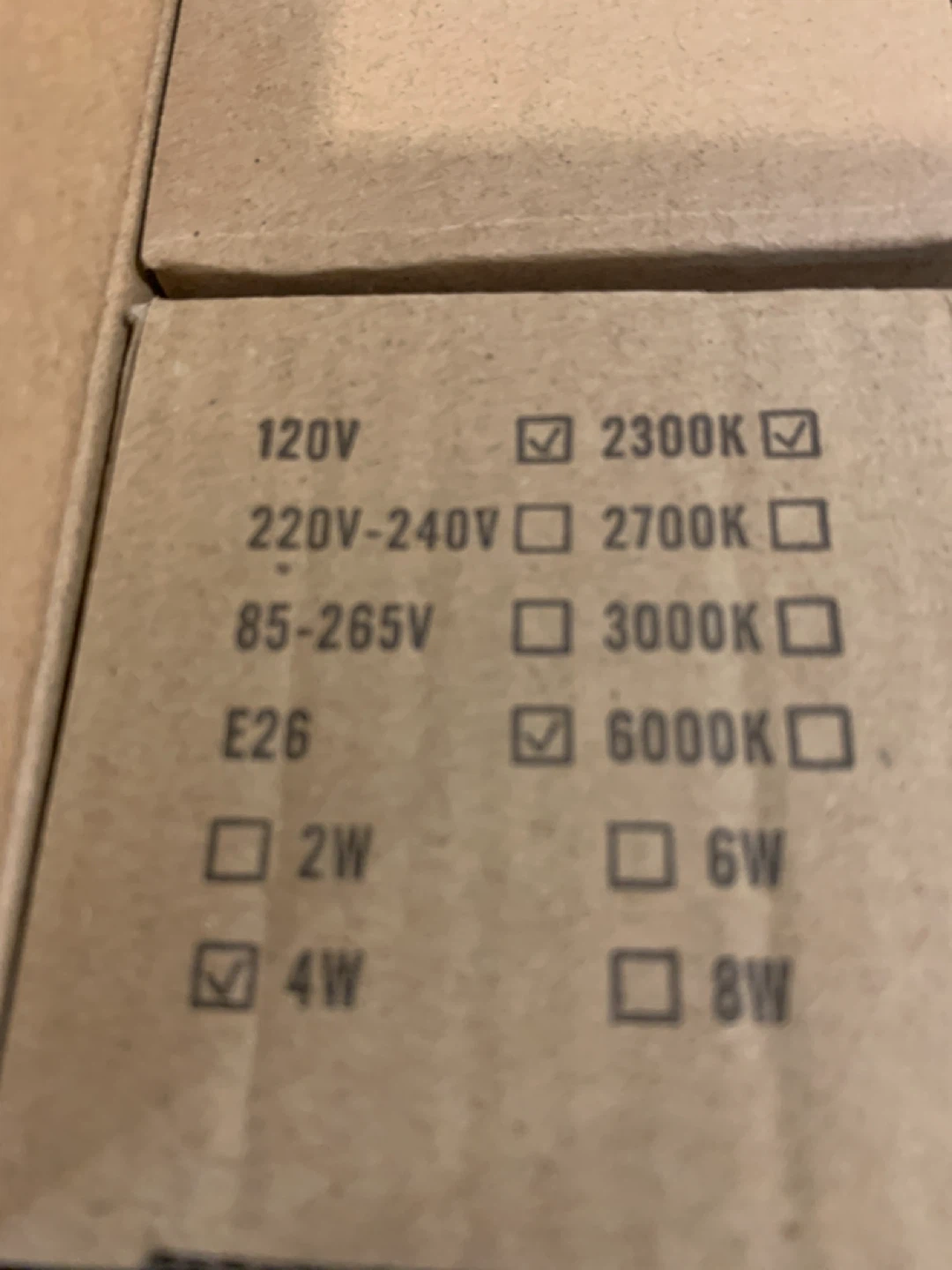 Edison style LED light bulbs. These bulbs use 4W of power and have an E26 base. They provide a 2300K warm white light. Package includes multiple bulbs, voltage range is 85-265V.