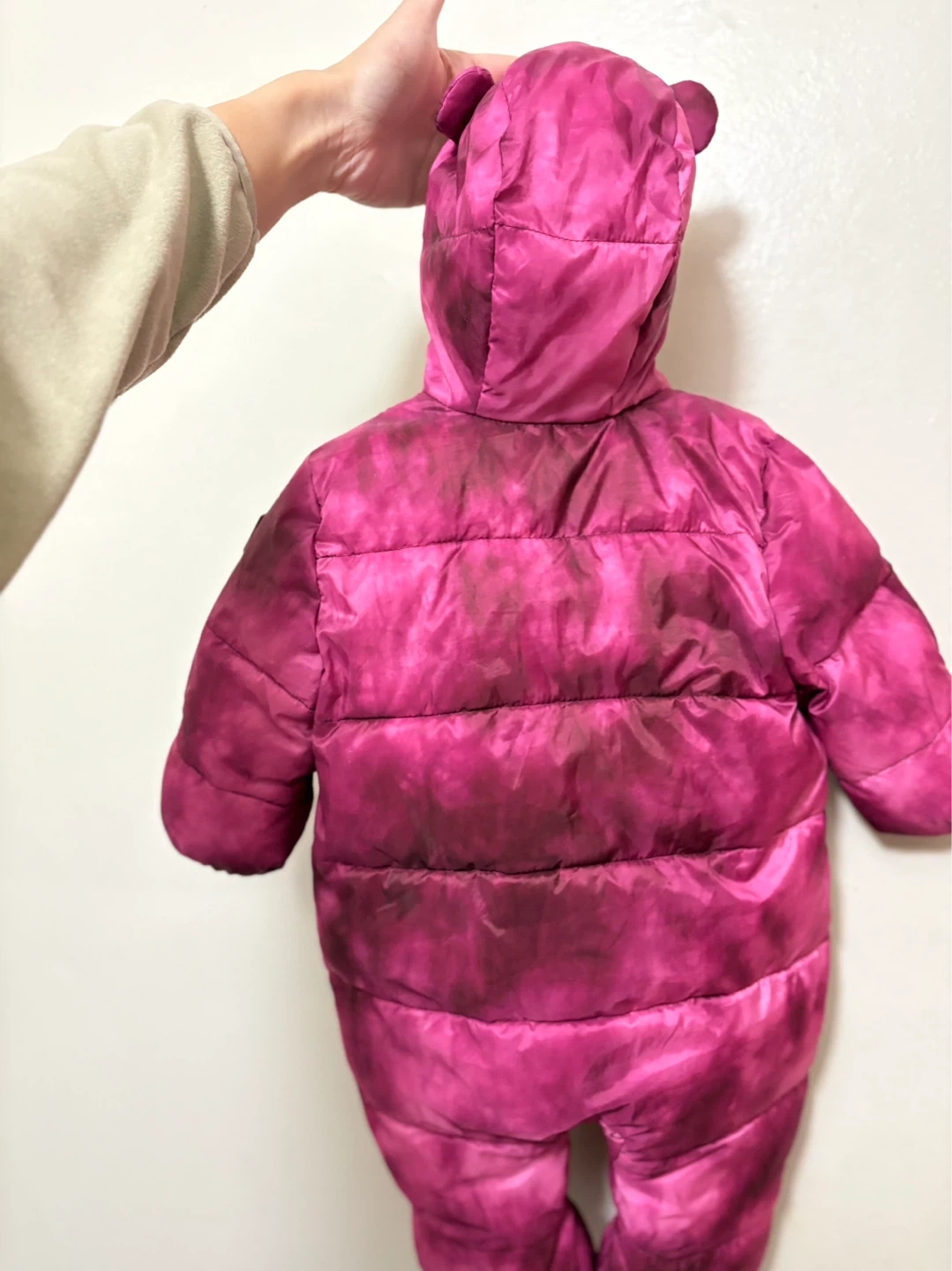Baby Gap water-resistant fleece-lined snowsuit. Made with 100% recycled materials and full Primaloft fill. Suitable for 0-6 months.