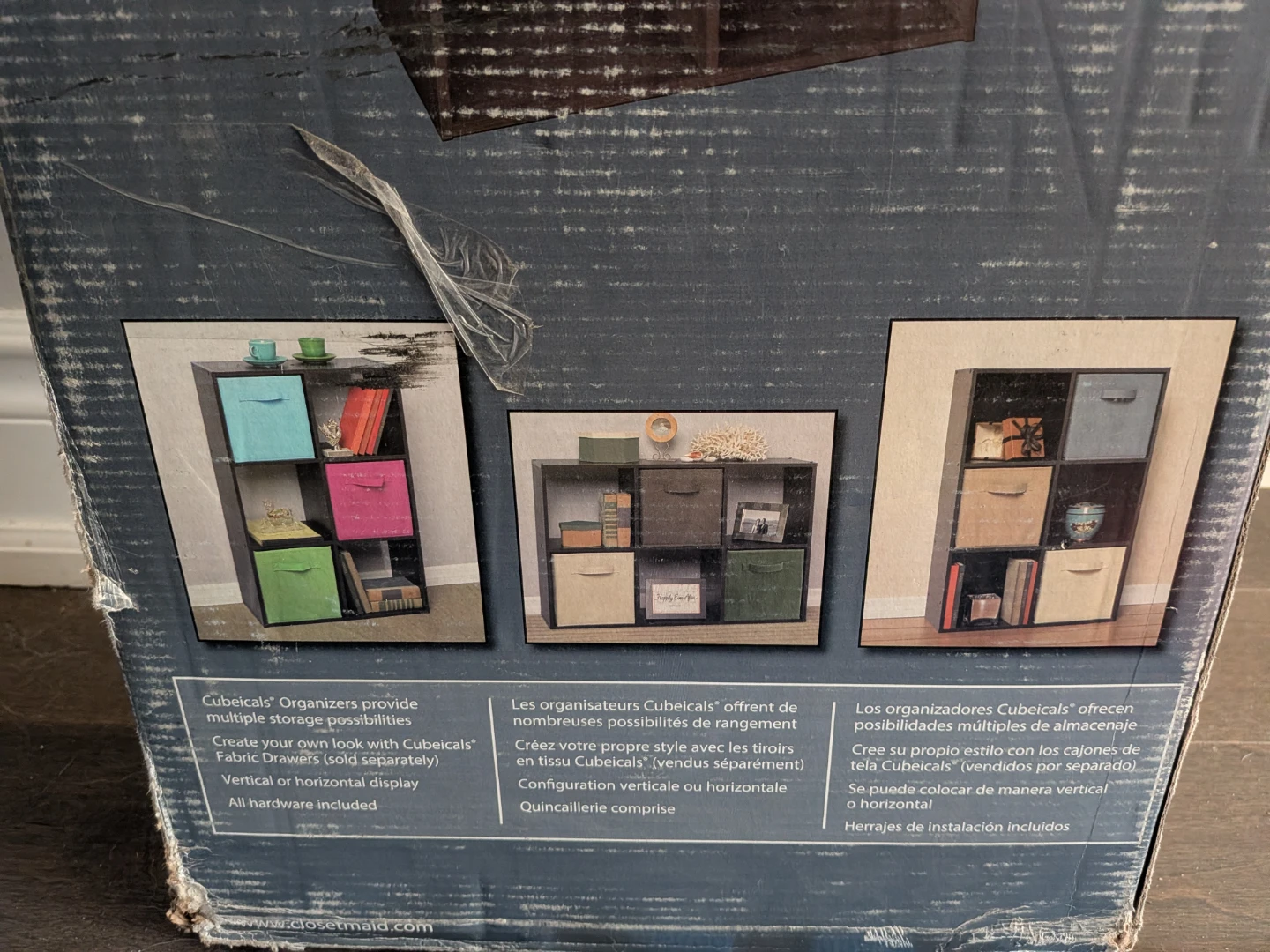 I'm offering a new open box ClosetMaid Cubeicals 6-cube organizer, which is perfect for adding extra storage to any room. It measures 35.88 inches in height, 24.13 inches in width, and 11.63 inches in depth, making it a versatile storage solution.