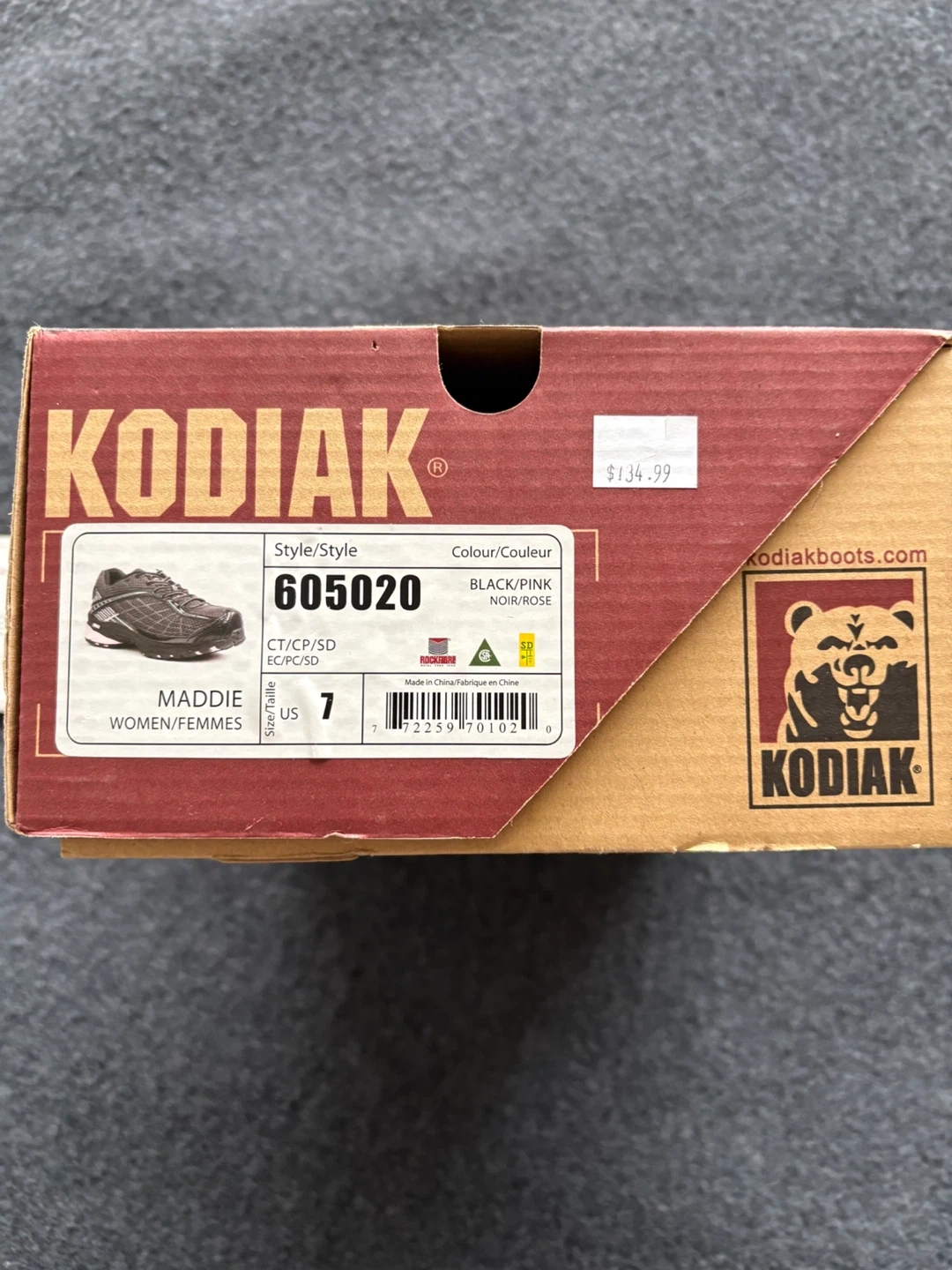 KODIAK steel toed runners. They're a size 7 and come in a black and pink. The original box is included. Worn once and no longer needed