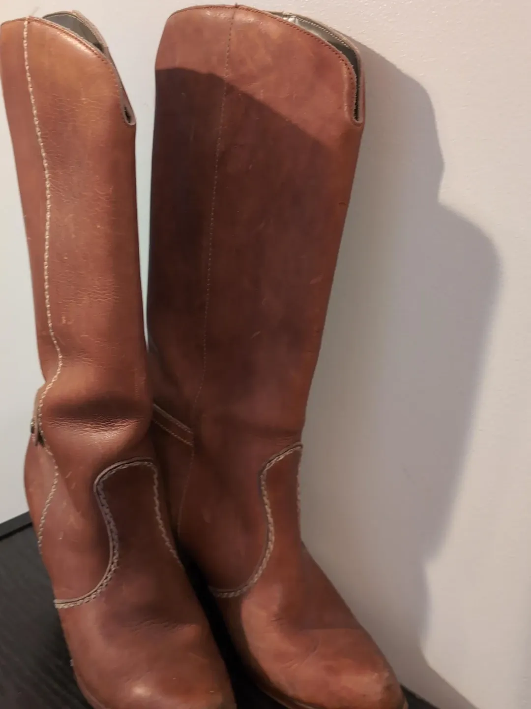 Selling a pair of brown leather riding boots. They're in good condition and ready for a new owner! They have a nice, classic look