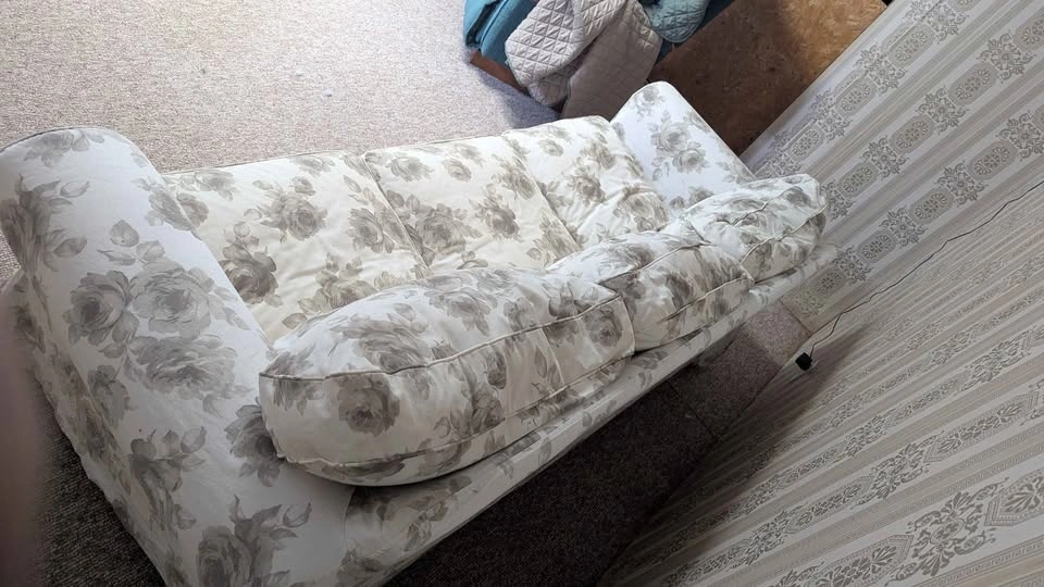 This sofa has not been used much over the years. It comes with a removable green cover for extra protection, and the main slipcover is fully removable and washable. The slipcover has a white background with gray roses. The sofa will be fully disassembled for easier transport. The tool, instructions, and all hardware needed for reassembly are included – it only takes a few minutes to put back together. Pick up is in Innerkip. I may be able to arrange delivery to Norwich, Woodstock, Simcoe, and other areas in Oxford County for a fee or by negotiation.
