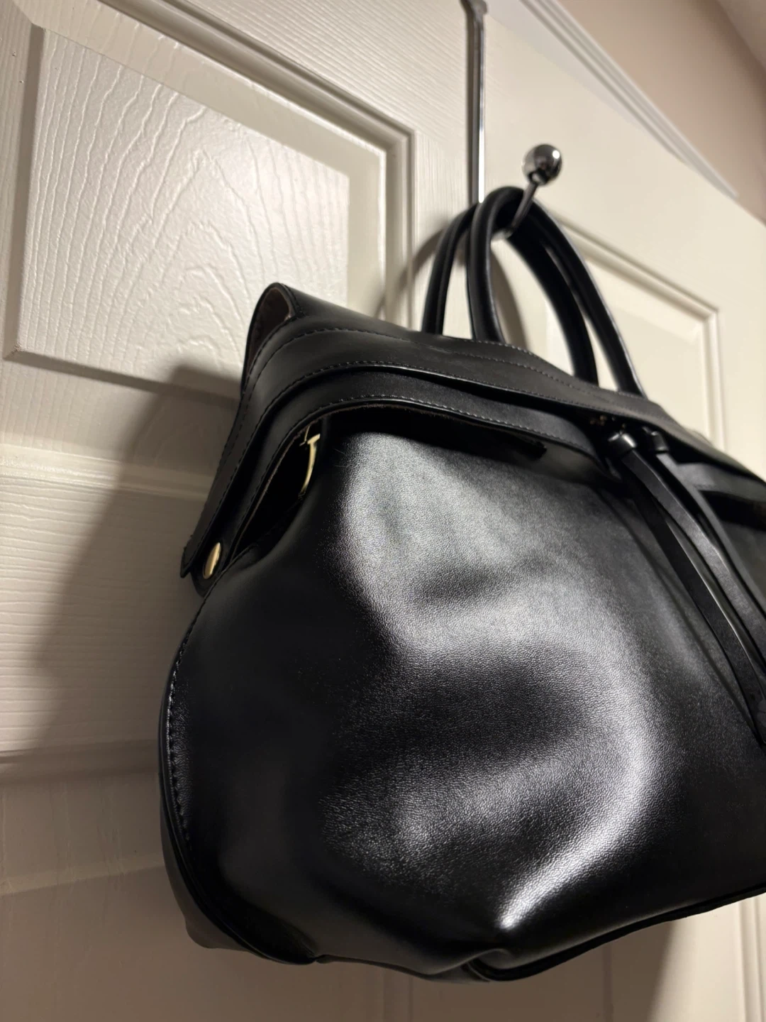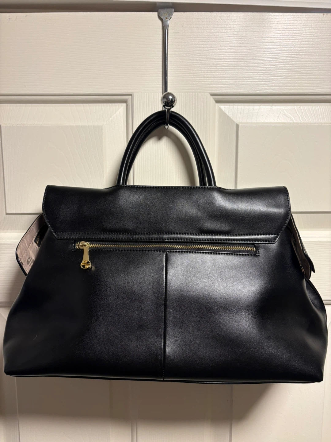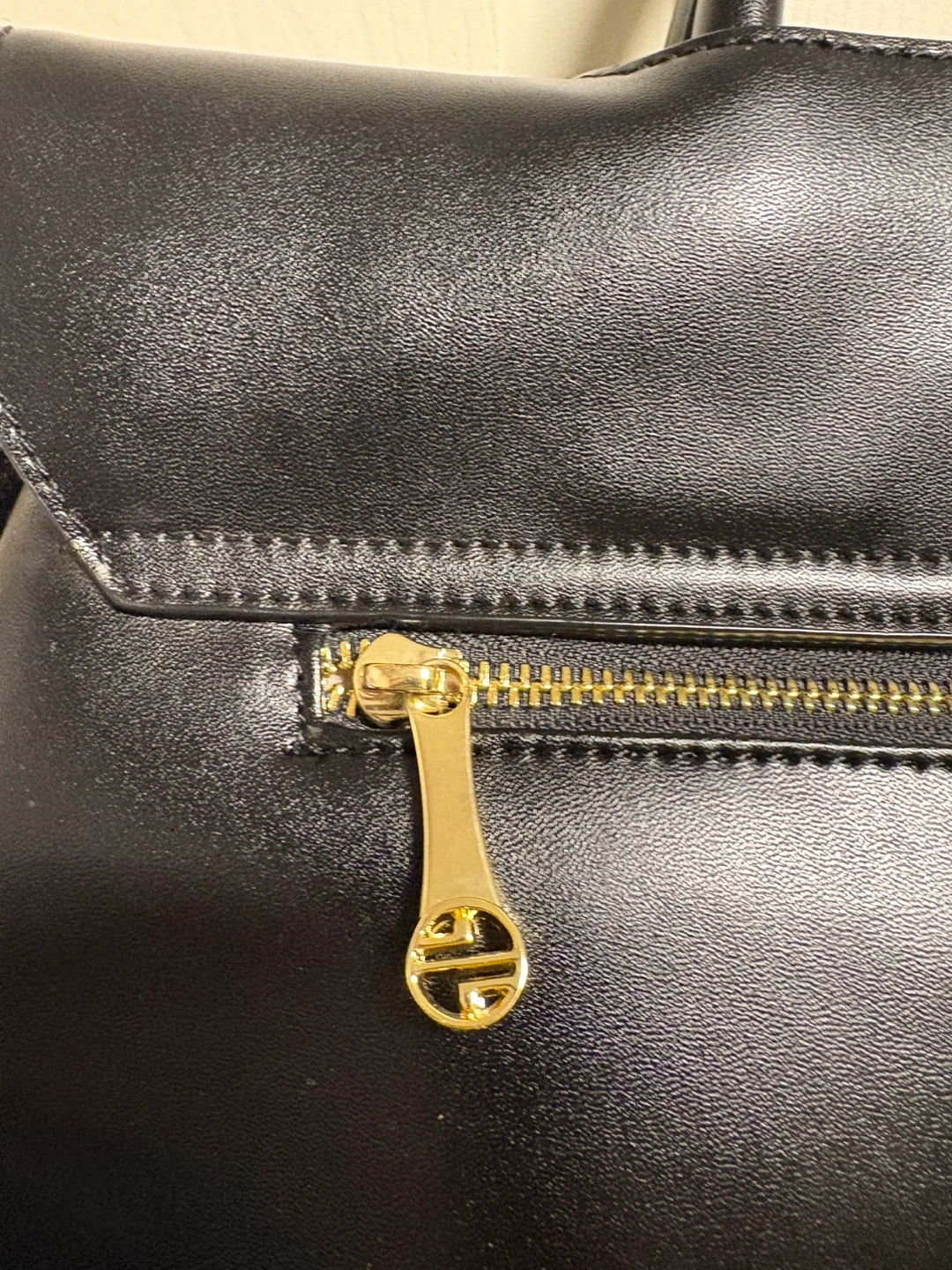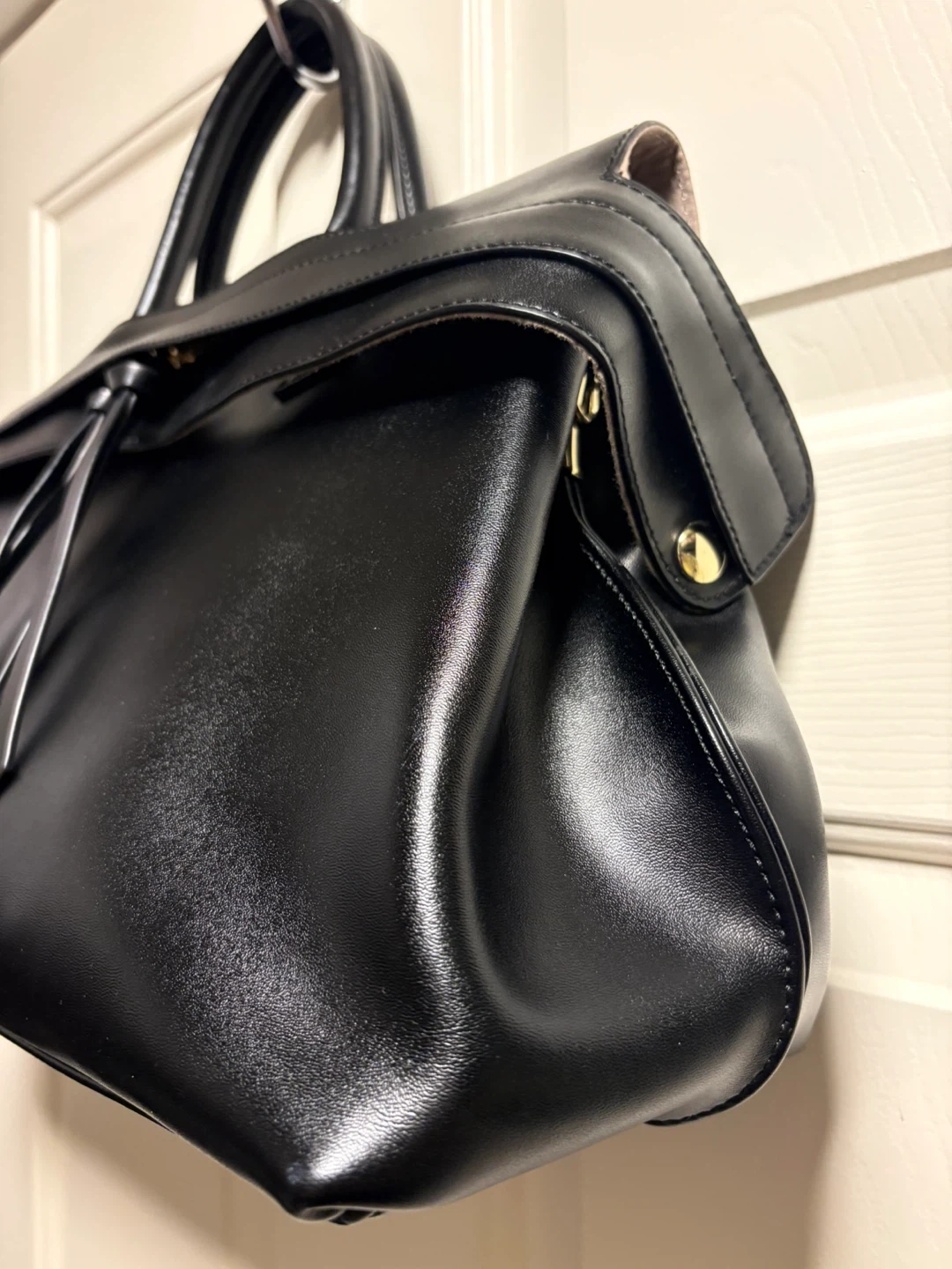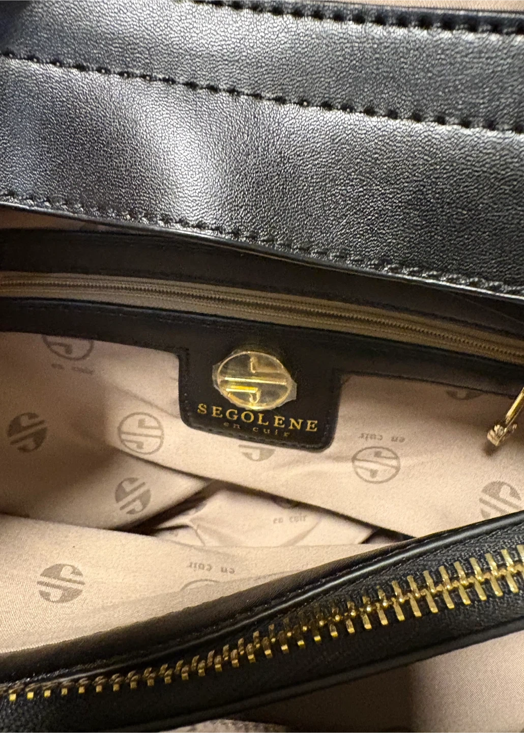Beautiful Ségolène Sac Cuir handbag in black. Genuine leather exterior and interior lining. Features a zip closure and gold-tone hardware. Spacious interior with multiple compartments. It's a stylish everyday bag!