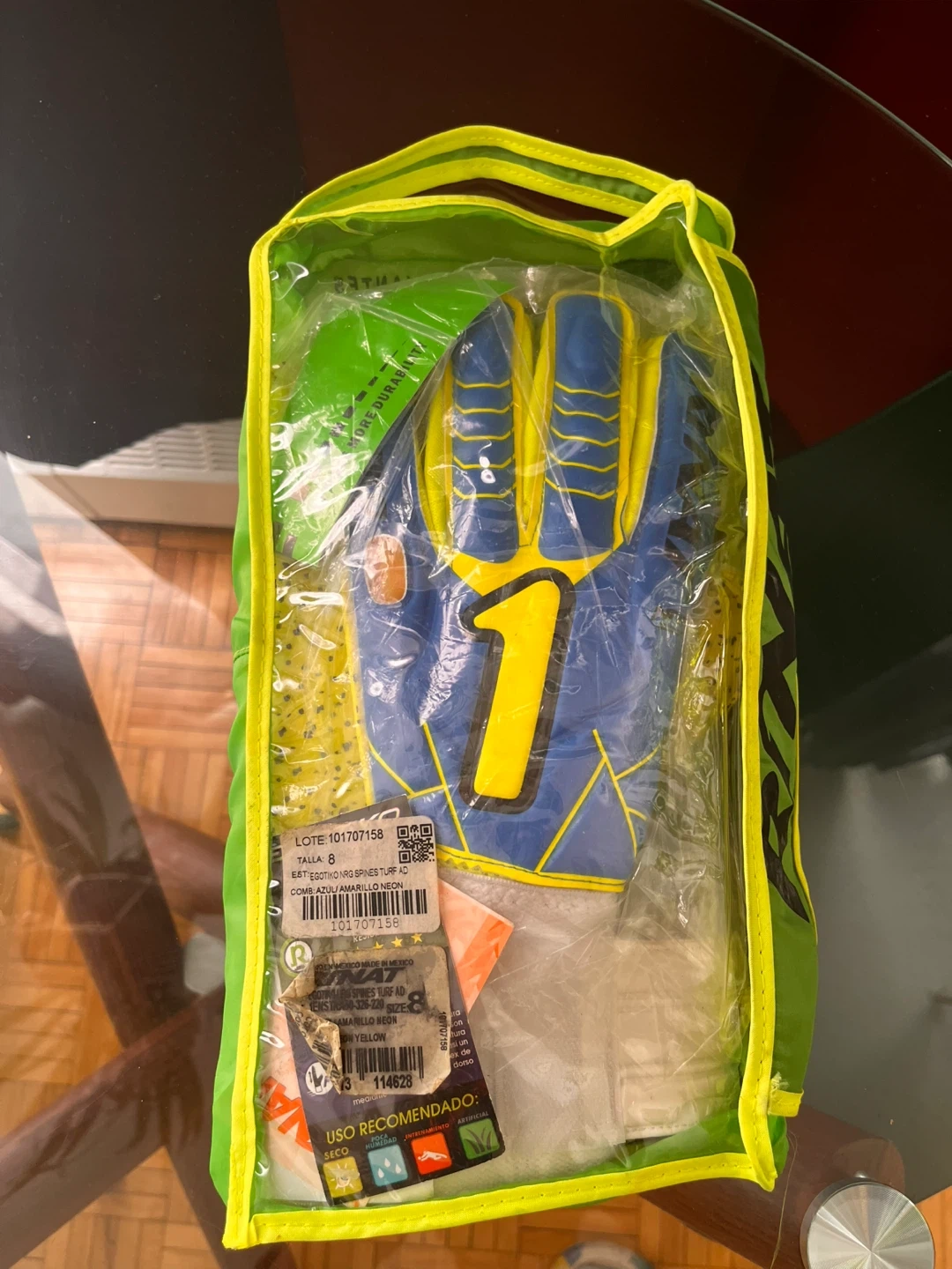 Selling a brand new pair of RINAT soccer goalkeeper gloves (Model: Egotiko NRG Spines). Never used, still with tags and carrying case.