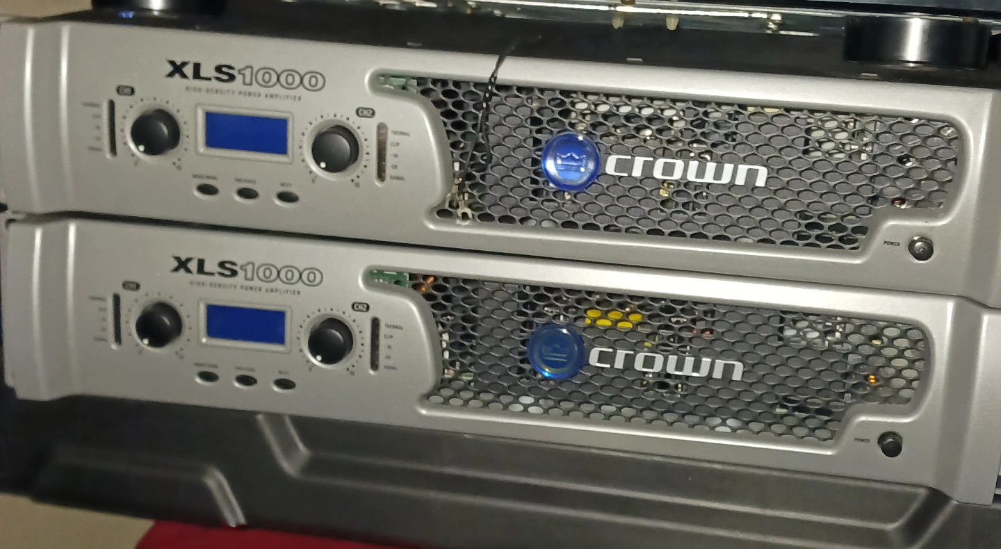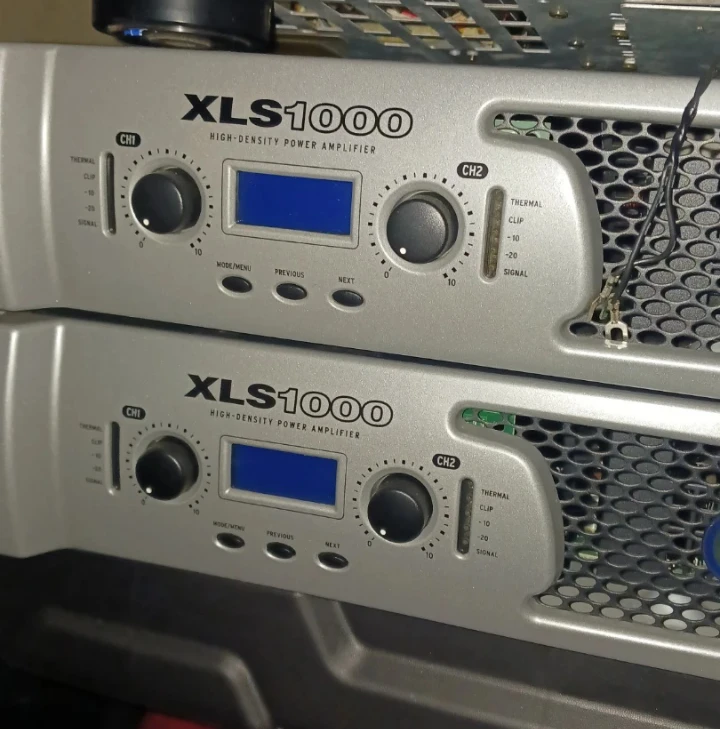 This listing is for two Crown XLS1000 high-density power amplifiers. They are professional audio devices designed for demanding sound applications. These units offer robust performance and reliable operation for live sound or installed systems. Selling as a pair