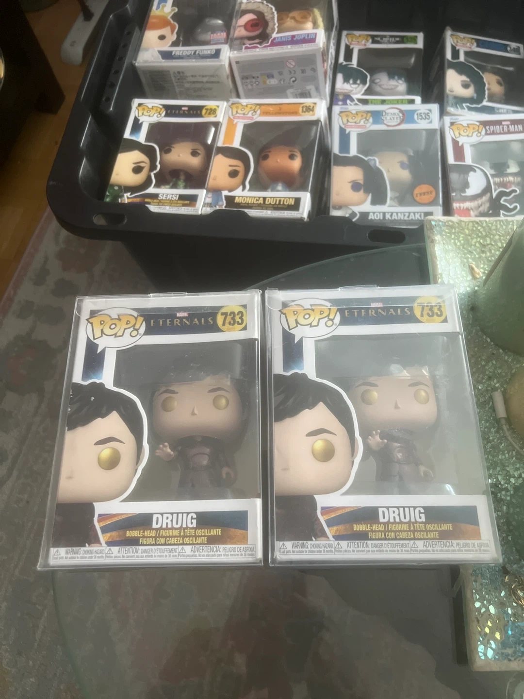 Get two Funko Pop! figures of Druig from Marvel's Eternals, model number 733. These are bobble-heads with oscillating heads. They're great for any Marvel collector!