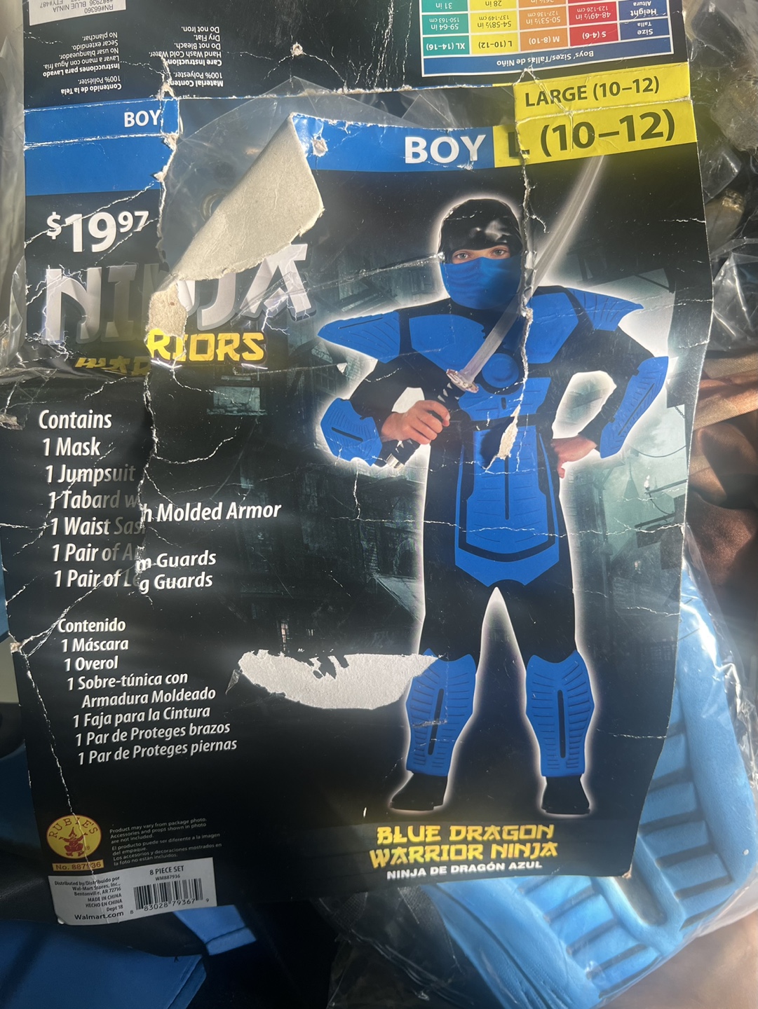 Get your little ninja ready for action with this Blue Dragon Warrior Ninja costume! It's a boy's size large (10-12). The costume includes: