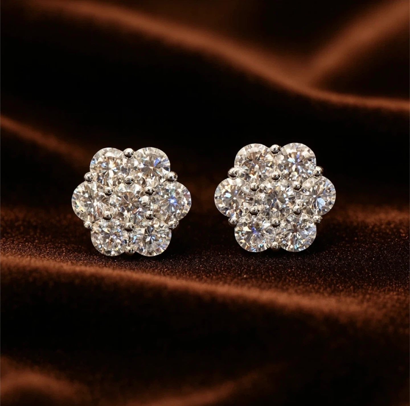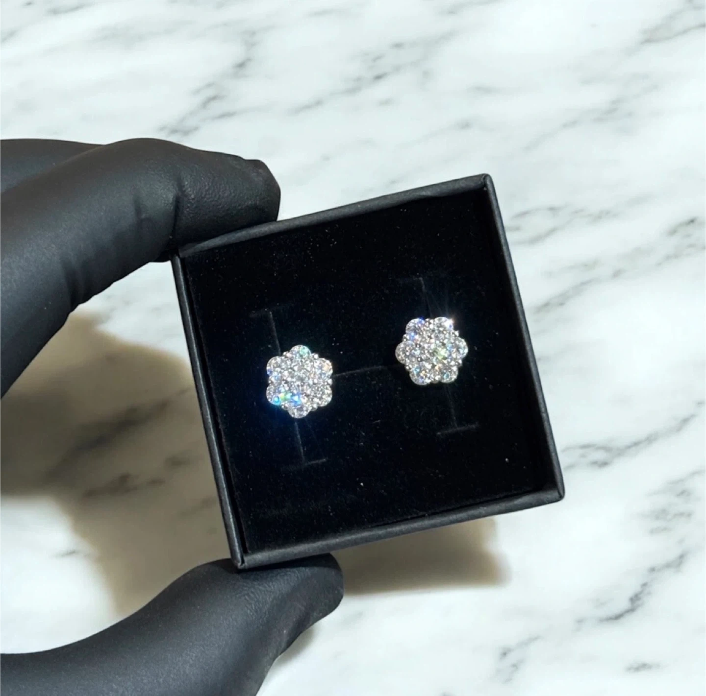 Selling these VVS1 Moissanite Flower Cluster studs. These have way more fire than a diamond and hit hard under any light.