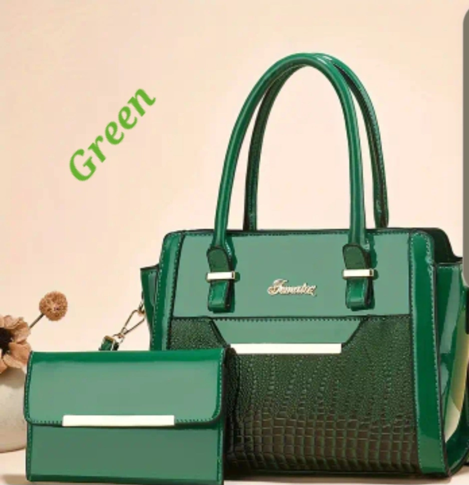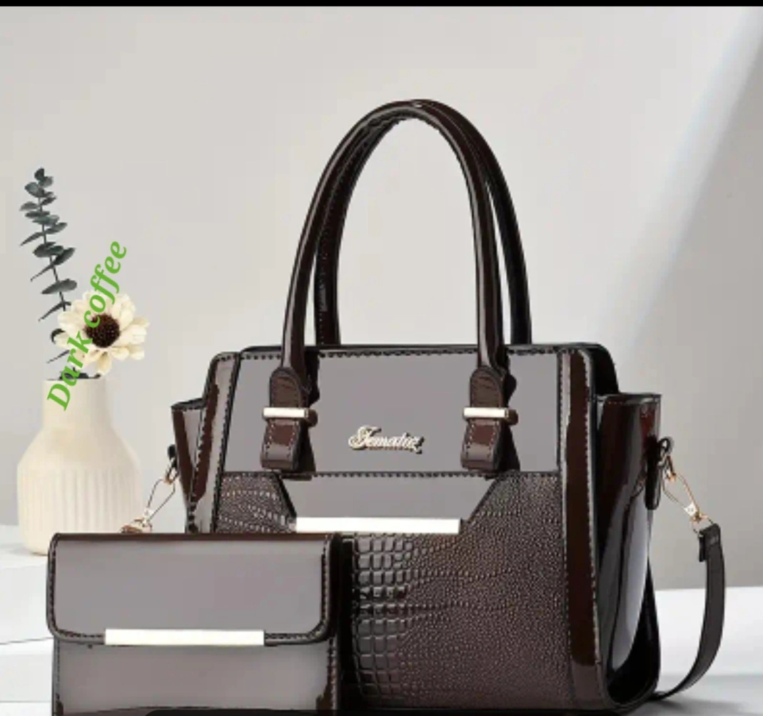 This is a stylish handbag set that includes a large handbag and a matching wallet. The handbag has a top handle and a detachable shoulder strap. The wallet has a zipper closure. The set is perfect for everyday use or for special occasions. Two colors available