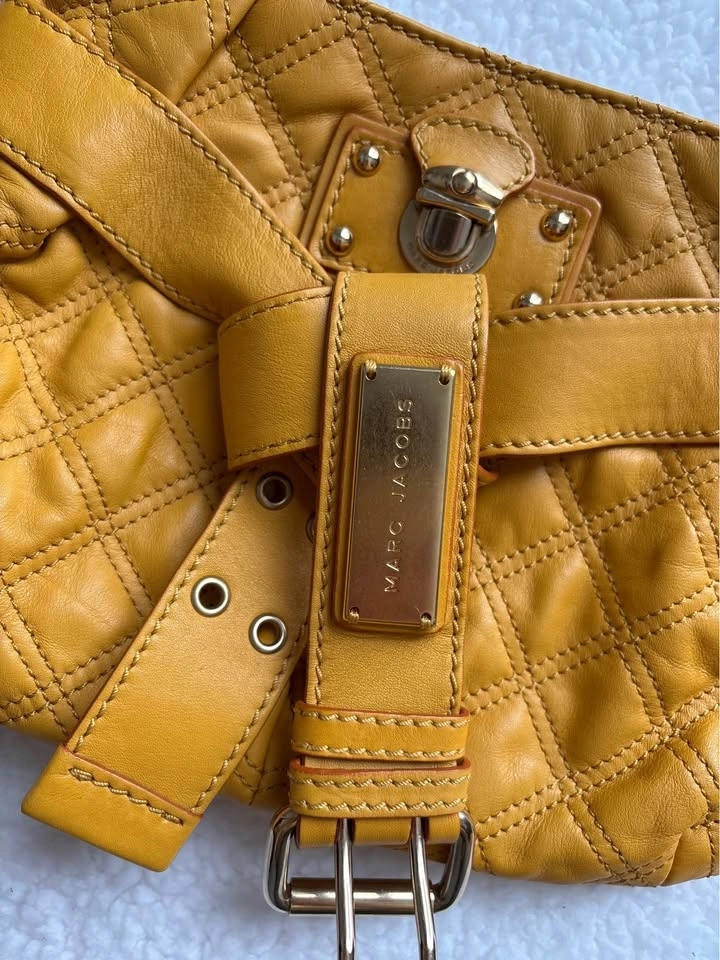 Beautiful Marc Jacobs Mustard/Yellow Quilted Leather Baroque Single Shoulder Bag with gold tone hardware in excellent condition. Preferably pick up near 16th and 9th line.