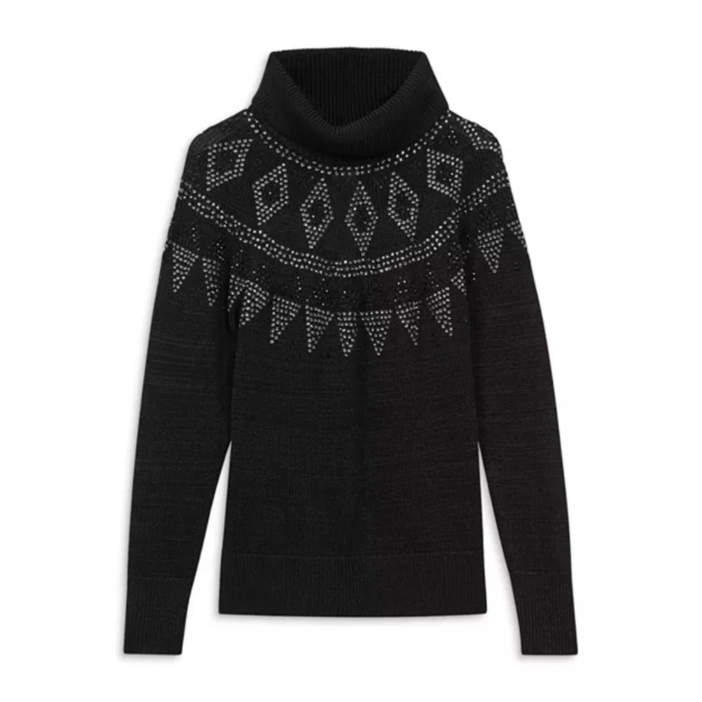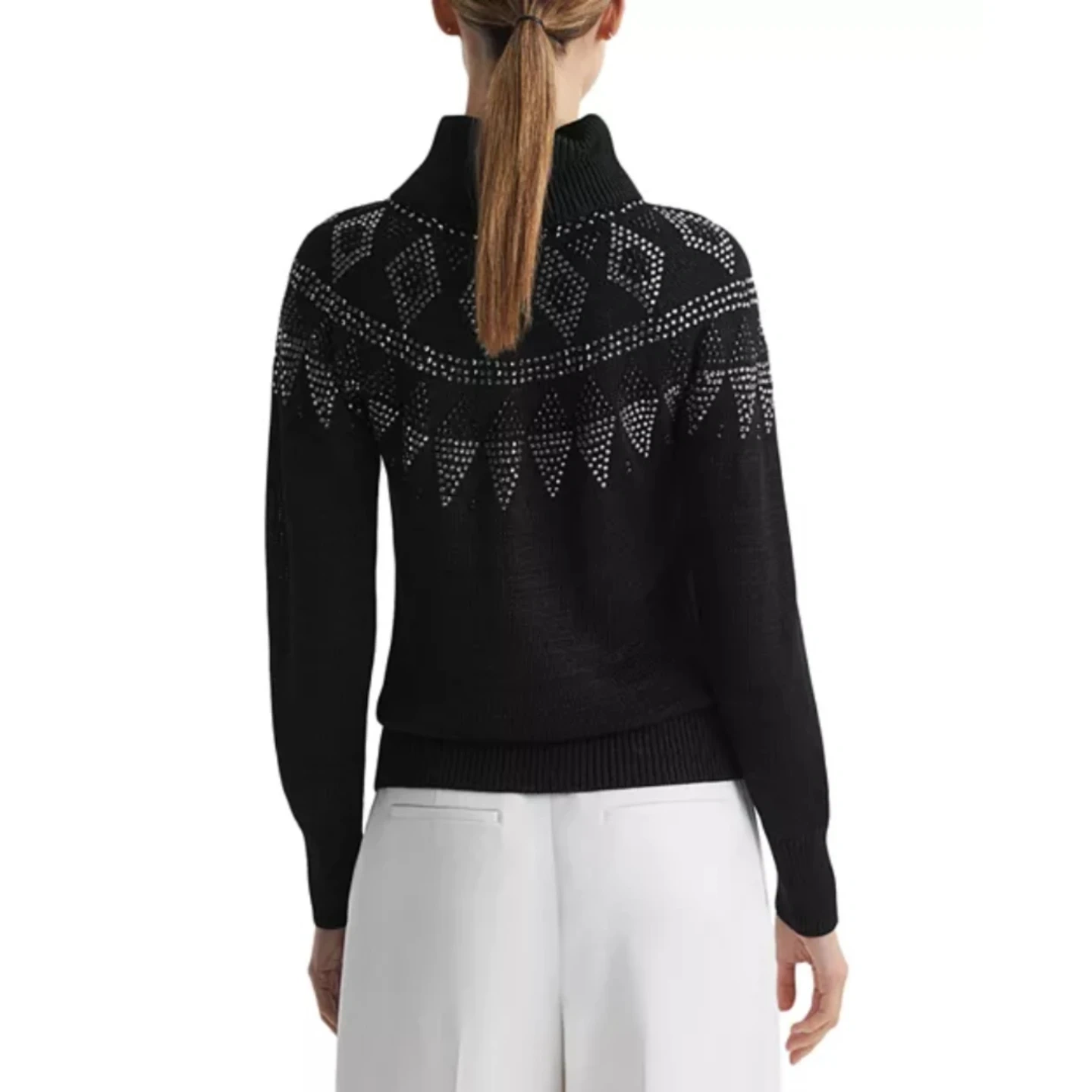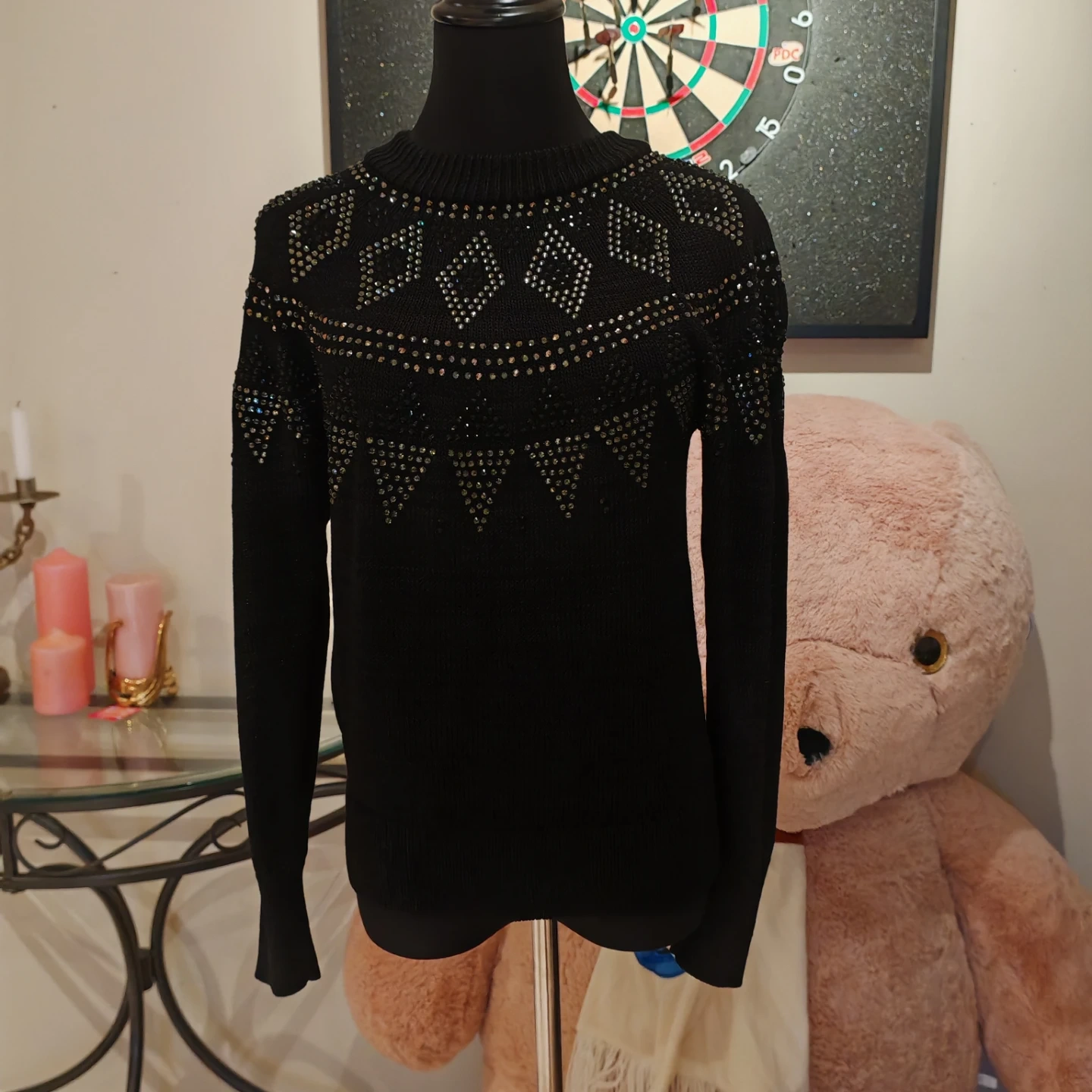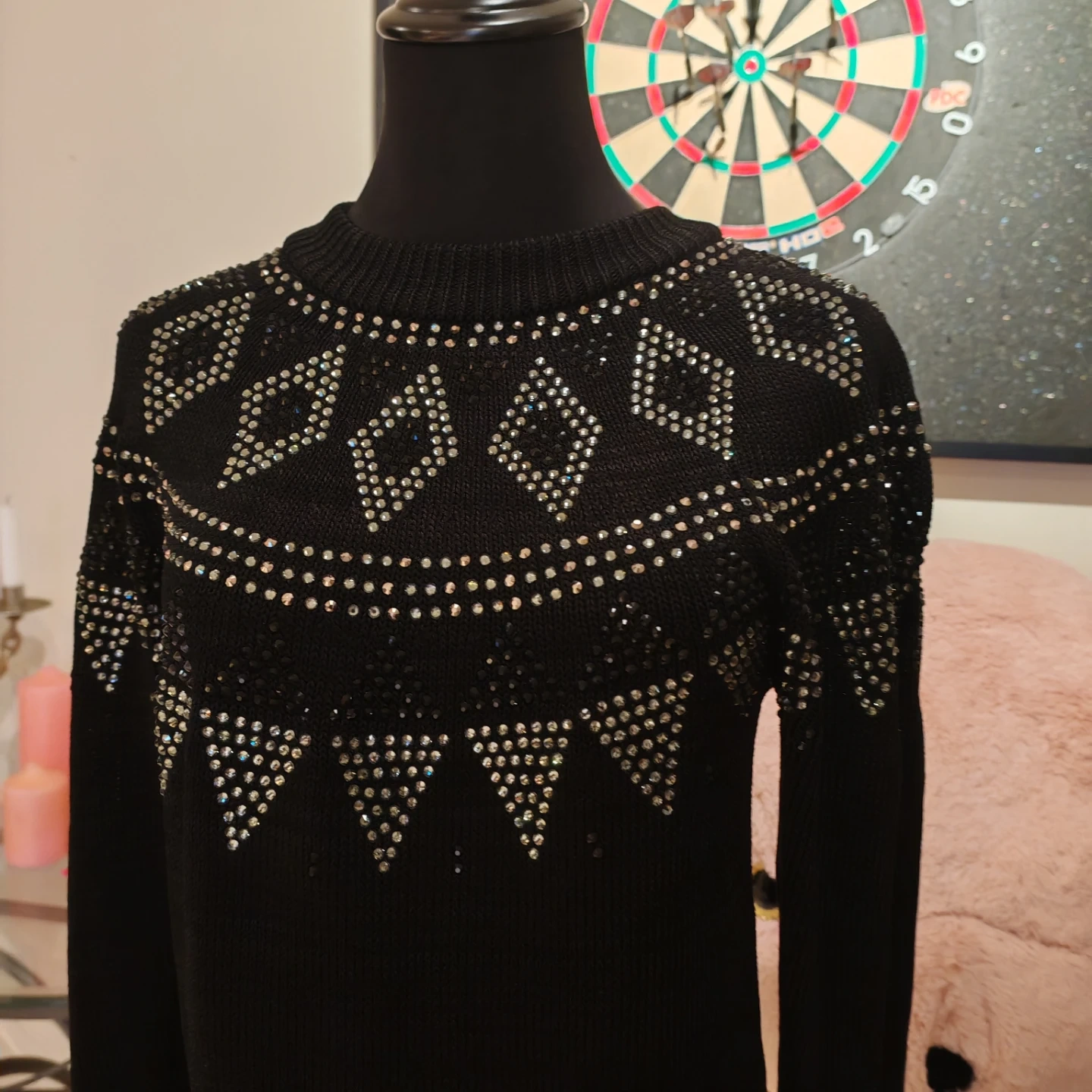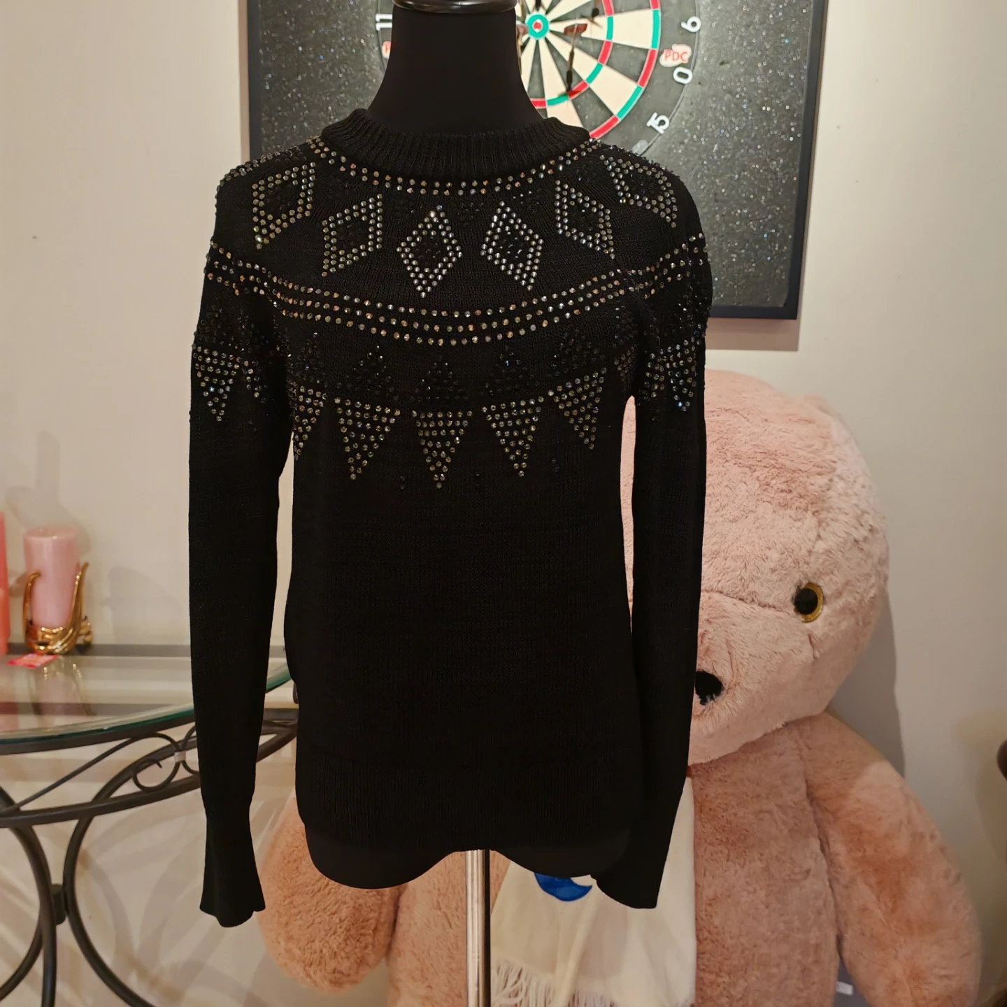 Add some sparkle to your wardrobe with this REISS Bella embellished sweater! This stunning, black sweater features dazzling embellishments. It is in good condition, ready to elevate your style.
