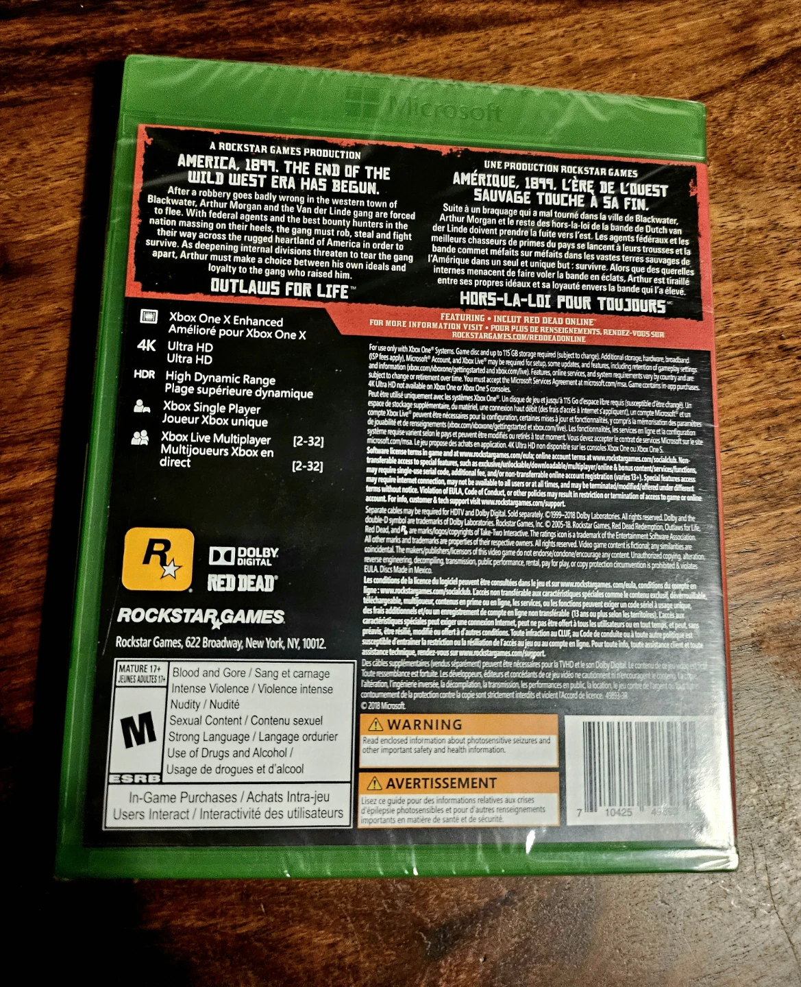 BRAND NEW + SEALED...Rockstar Games Presents Red Dead Redemption 2 for Xbox One. This open-world action-adventure game features a compelling story set in the Wild West. It supports 4K Ultra HD and HDR for enhanced visuals. Requires Xbox Live Multiplayer for online play.