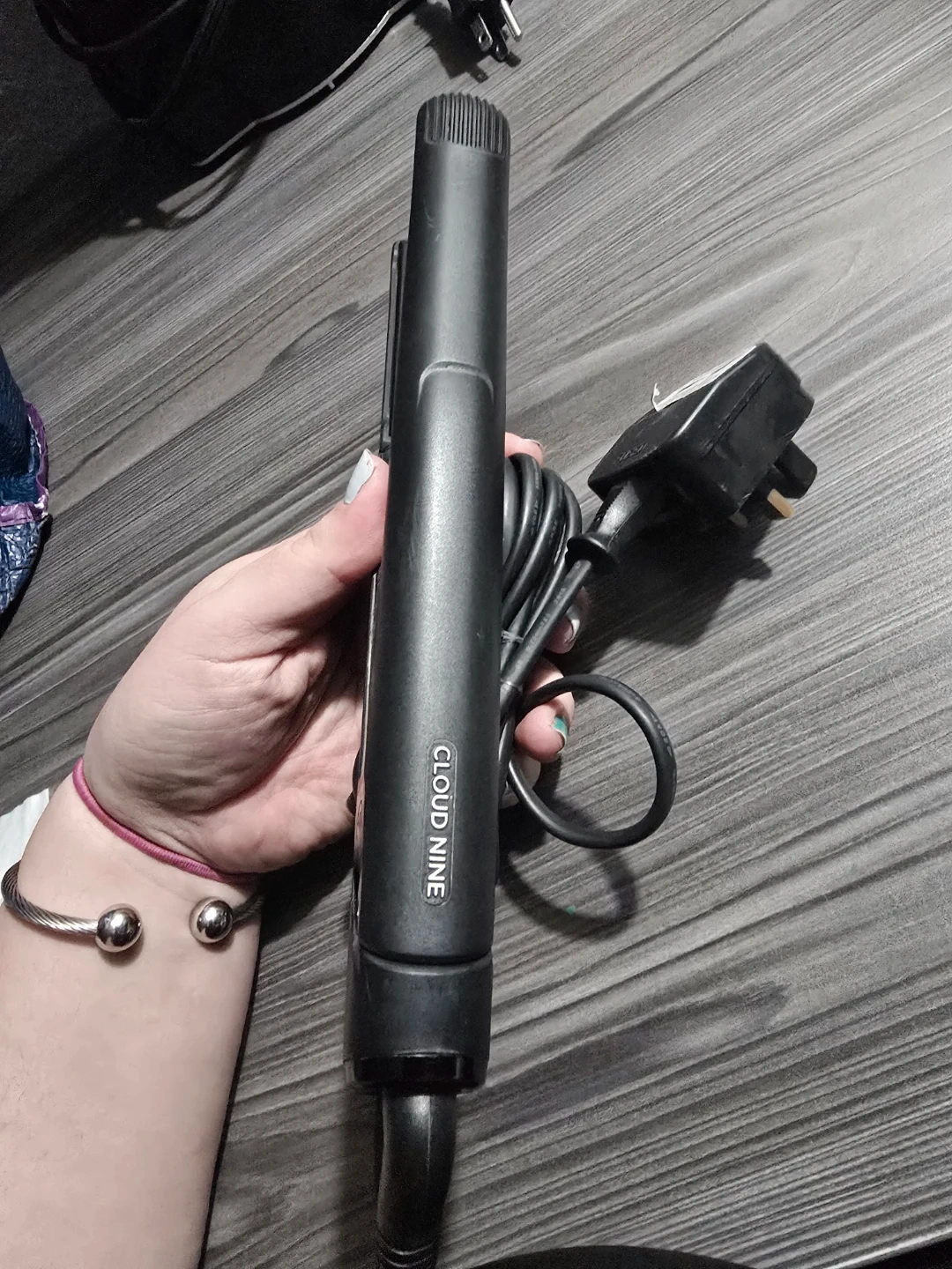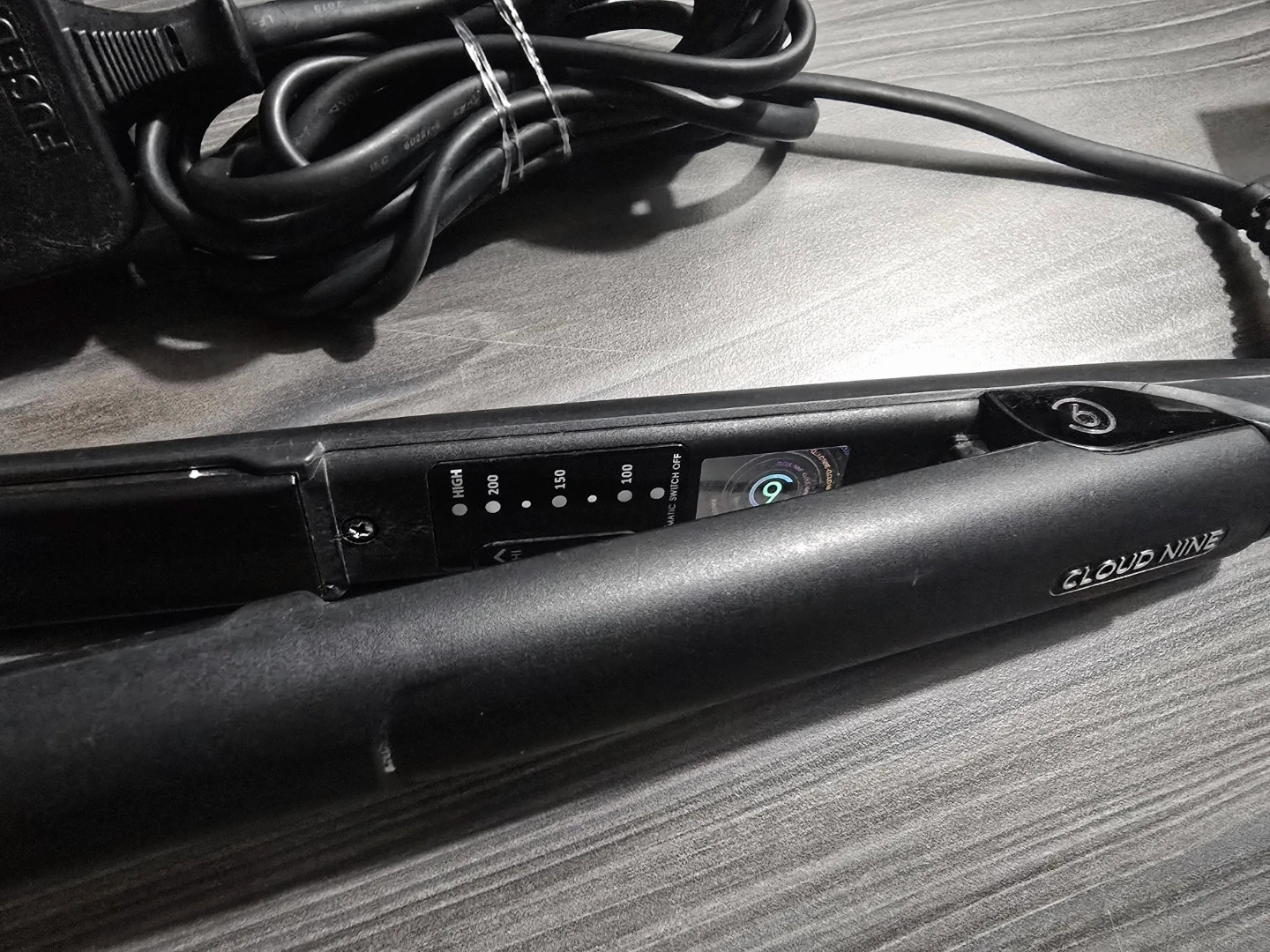 This is a black Cloud Nine hair straightener. It features adjustable temperature settings for different hair types. It's a great tool for achieving smooth and styled hair quickly!
