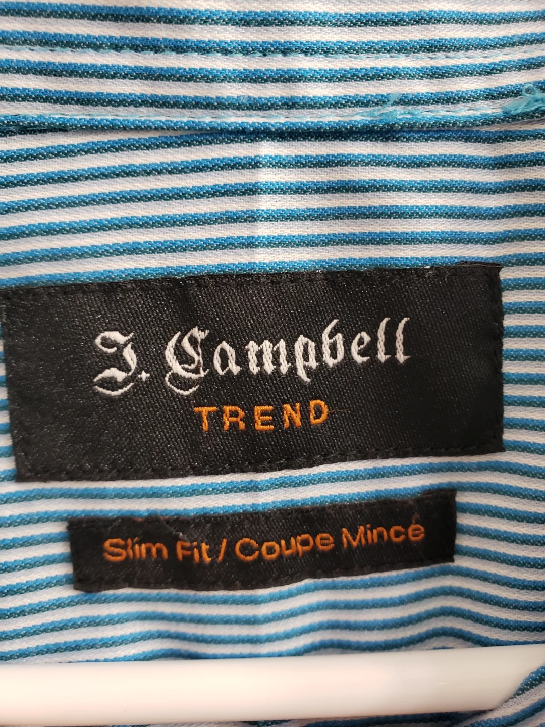 J. Campbell Trend men's long-sleeve dress shirt. Blue and white pinstripe pattern. Size 15 1/2 neck, 34/35 sleeve. Slim fit.like new