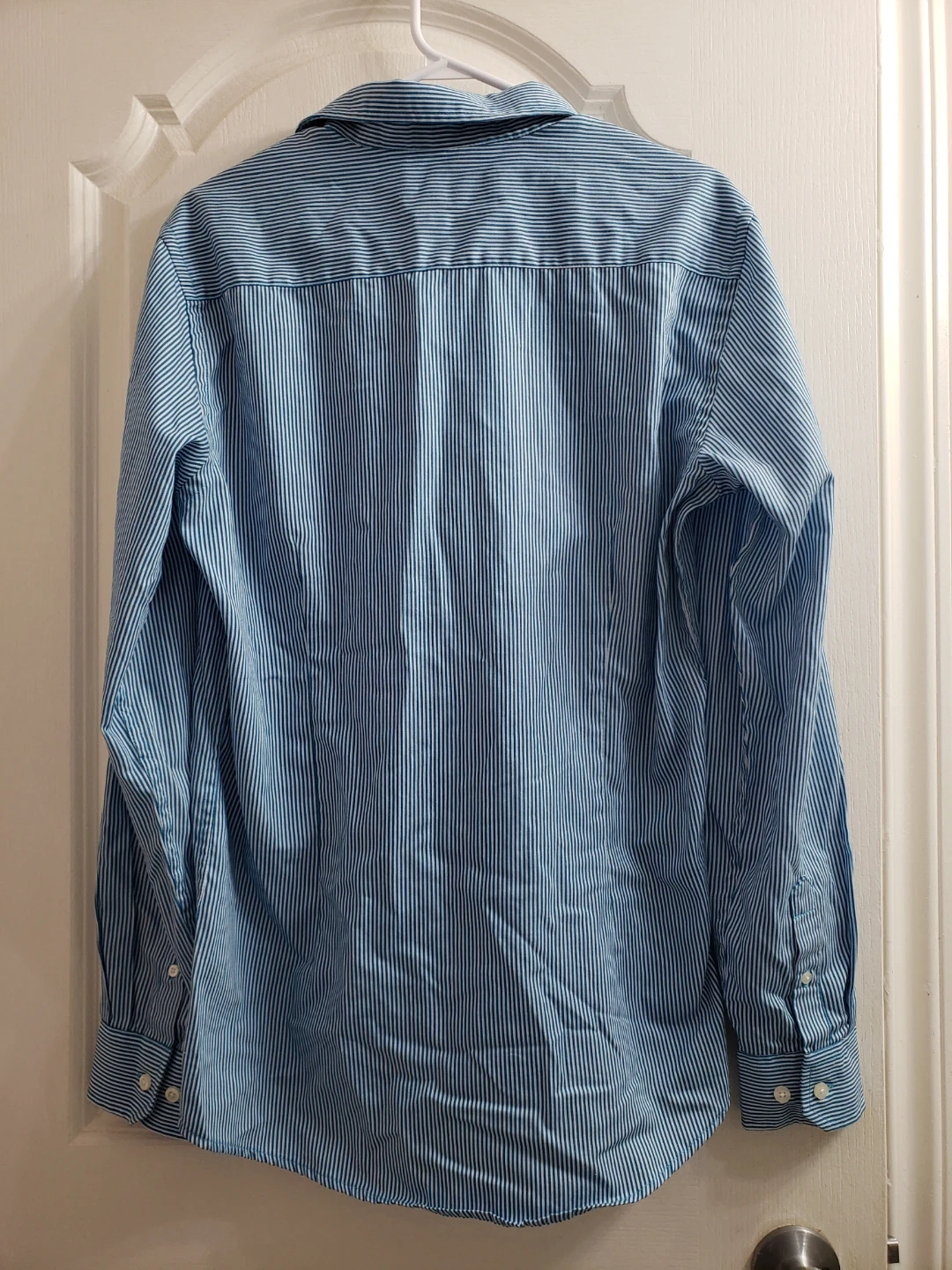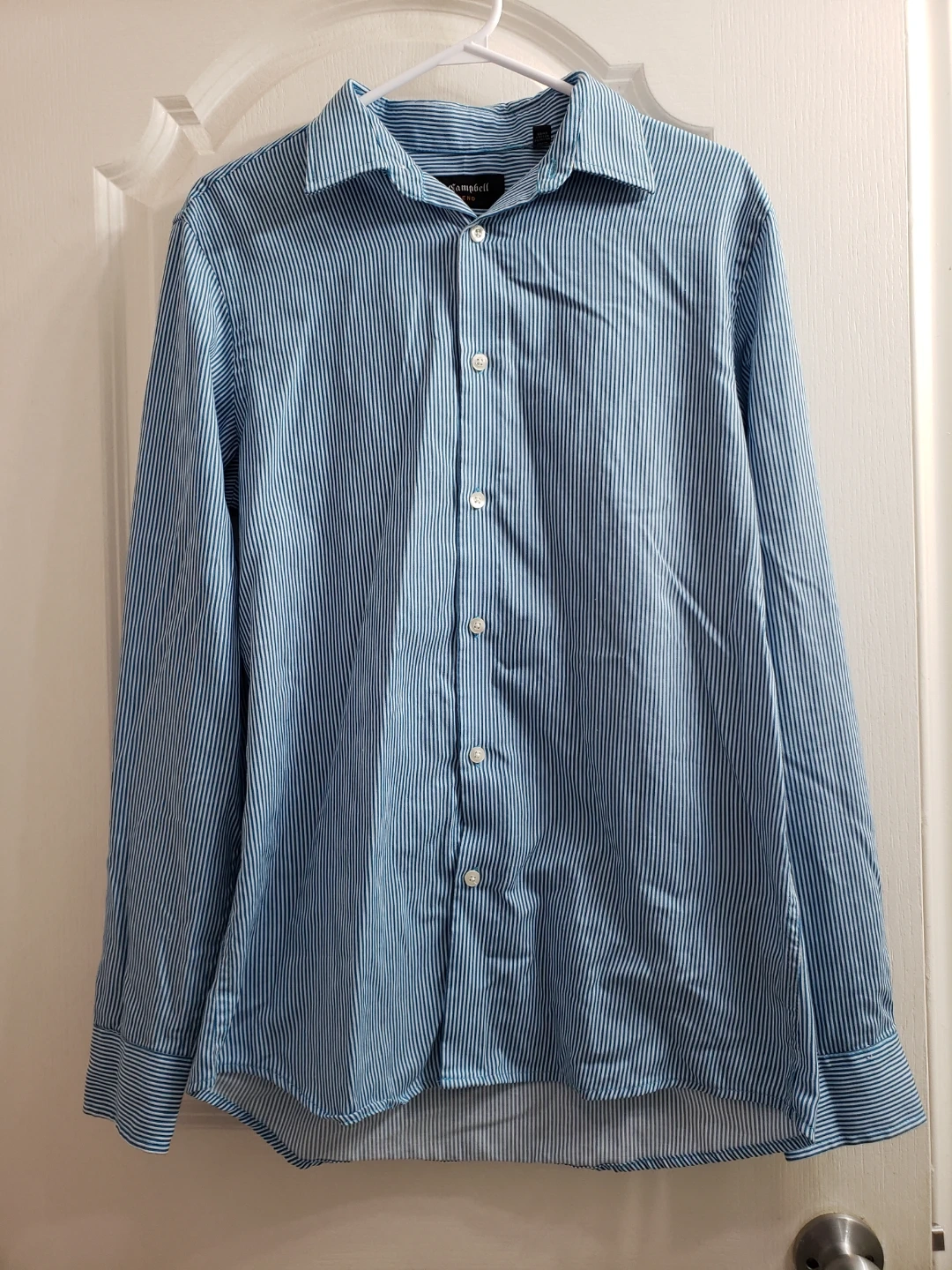 J. Campbell Trend men's long-sleeve dress shirt. Blue and white pinstripe pattern. Size 15 1/2 neck, 34/35 sleeve. Slim fit.like new