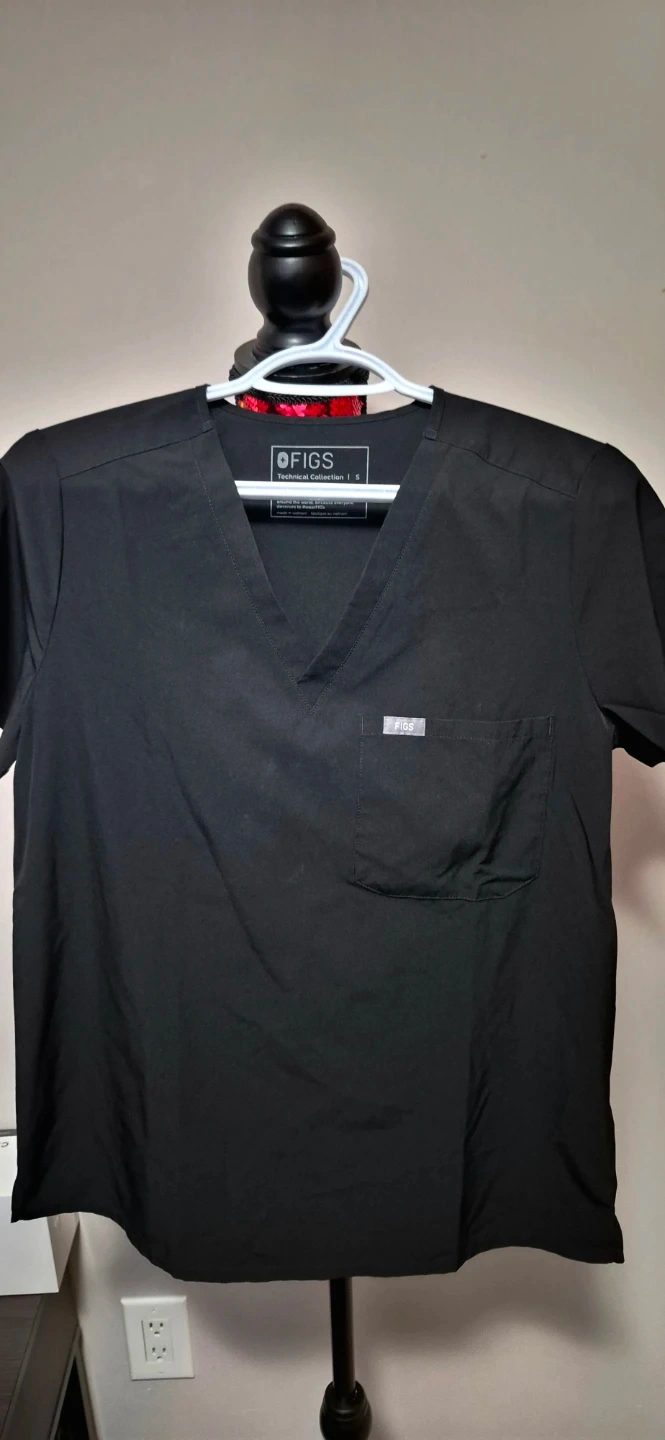 Selling a FIGS scrub set in black, size small. The material is so comfy and flexible, perfect for long shifts! The set includes both the top and the pants. Great for anyone in the medical field or students!