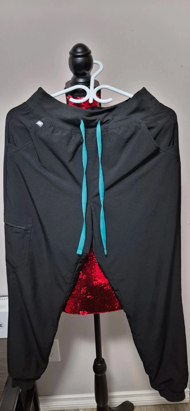 Selling a FIGS scrub set in black, size small. The material is so comfy and flexible, perfect for long shifts! The set includes both the top and the pants. Great for anyone in the medical field or students!