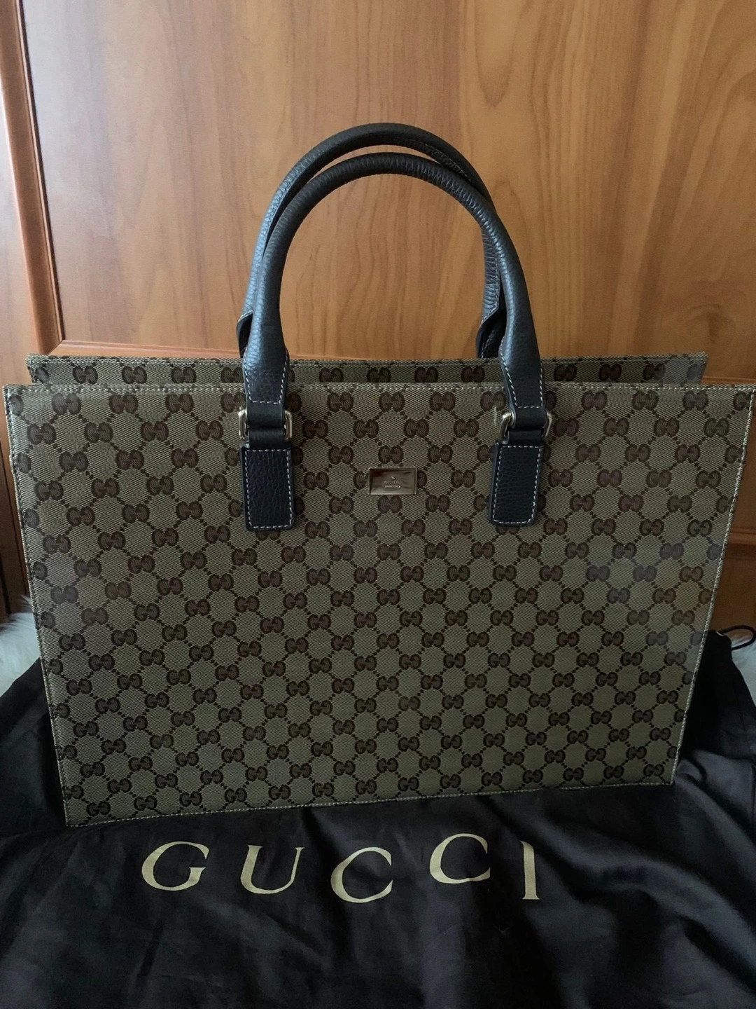 44Selling a classic Gucci tote bag featuring the iconic GG canvas pattern! It's in great shape and perfect for carrying your everyday essentials. The bag comes with a dust bag to keep it protected when not in use. A stylish and functional addition to any wardrobe Excellent , like new condition Made in Italy - with dustbag AUTHENTIC - no time wasters