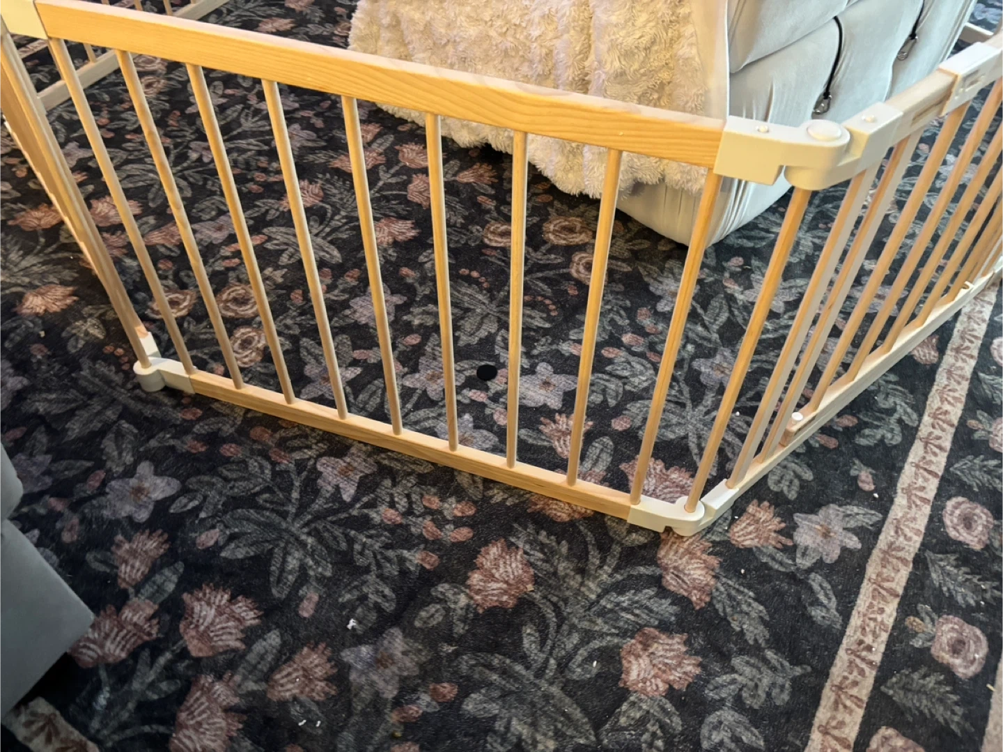 This wooden folding fence is great for creating a safe play area. It's made from light wood and comes with an instruction manual. Easy to set up and fold away! Tiny crack during assembly, item is new.