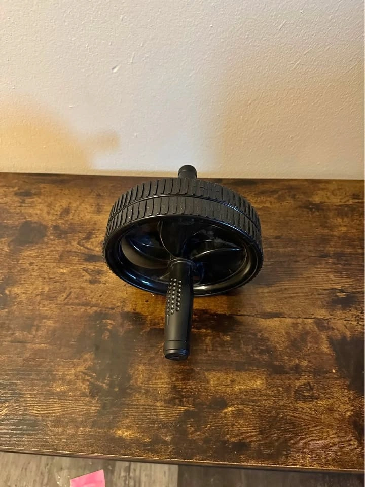 Ab roller in good condition. Rolls smoothly and functions as intended. Handles are solid and comfortable. Minor cosmetic wear from normal use, no cracks or defects. Great for core and ab workouts at home. Compact and easy to store. Ideal for home workouts, beginners to intermediate users. Local pickup.