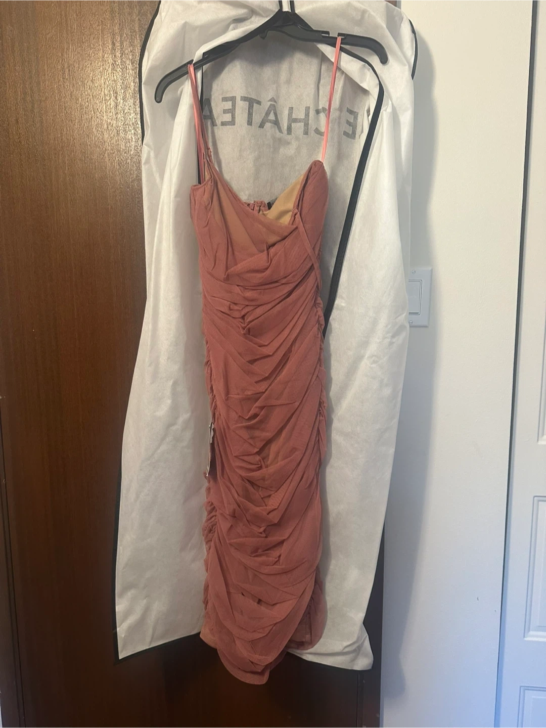 Selling a Le Chateau dress in a lovely mauve colour! It's a size L and features a beautiful ruched design. Originally bought for $89.00