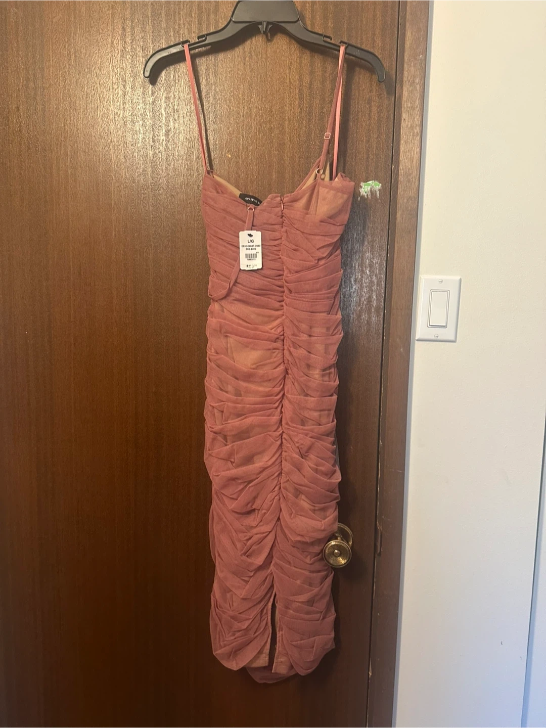 Selling a Le Chateau dress in a lovely mauve colour! It's a size L and features a beautiful ruched design. Originally bought for $89.00