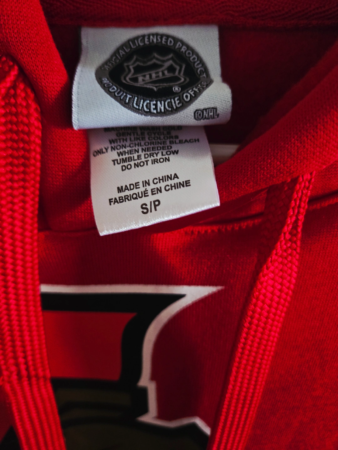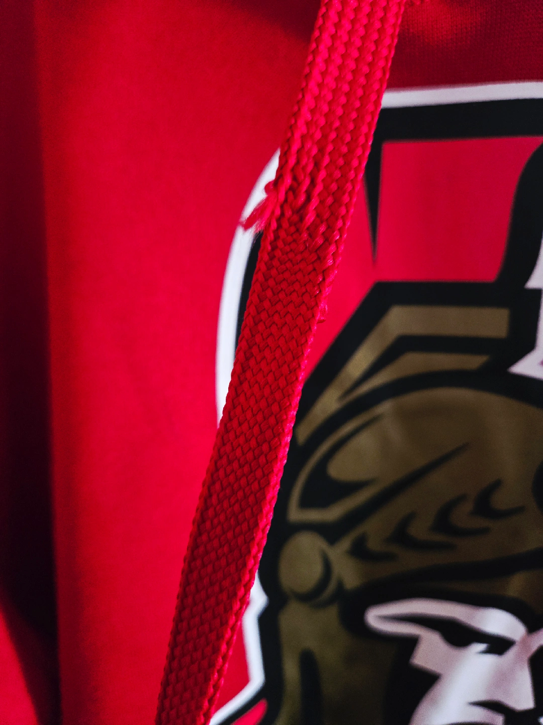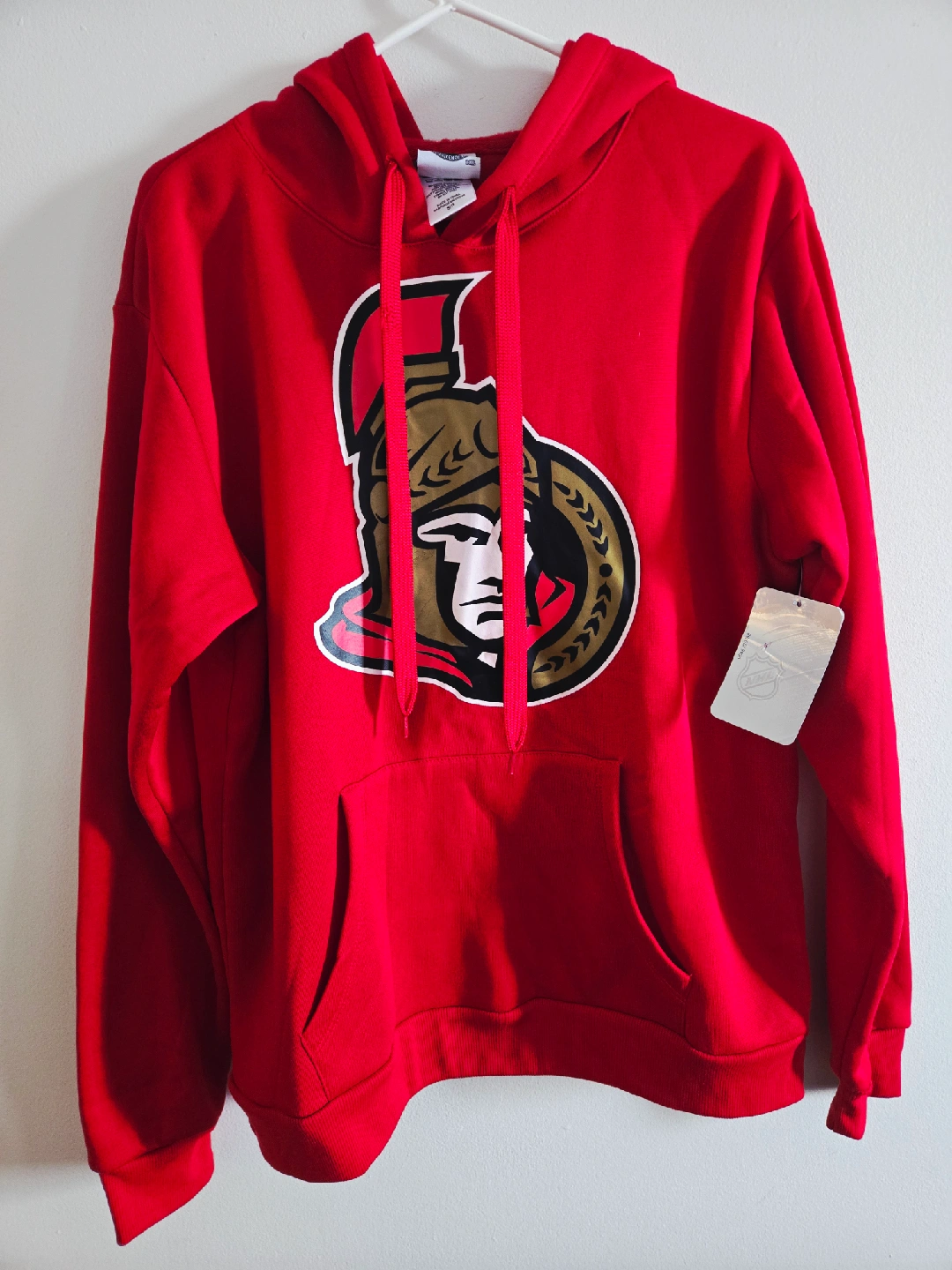 10Selling a bright red Ottawa Senators hoodie in size small (S/P). It's in great condition and perfect for showing off your team spirit! There's a slight fray on the drawstring, as shown in the photos.