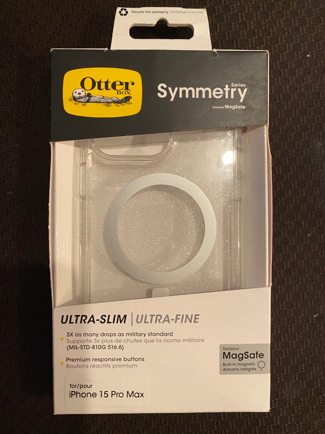 70Otter symmetry ultra slim iPhone 15 , pro max case , mag safe Clear , glitter