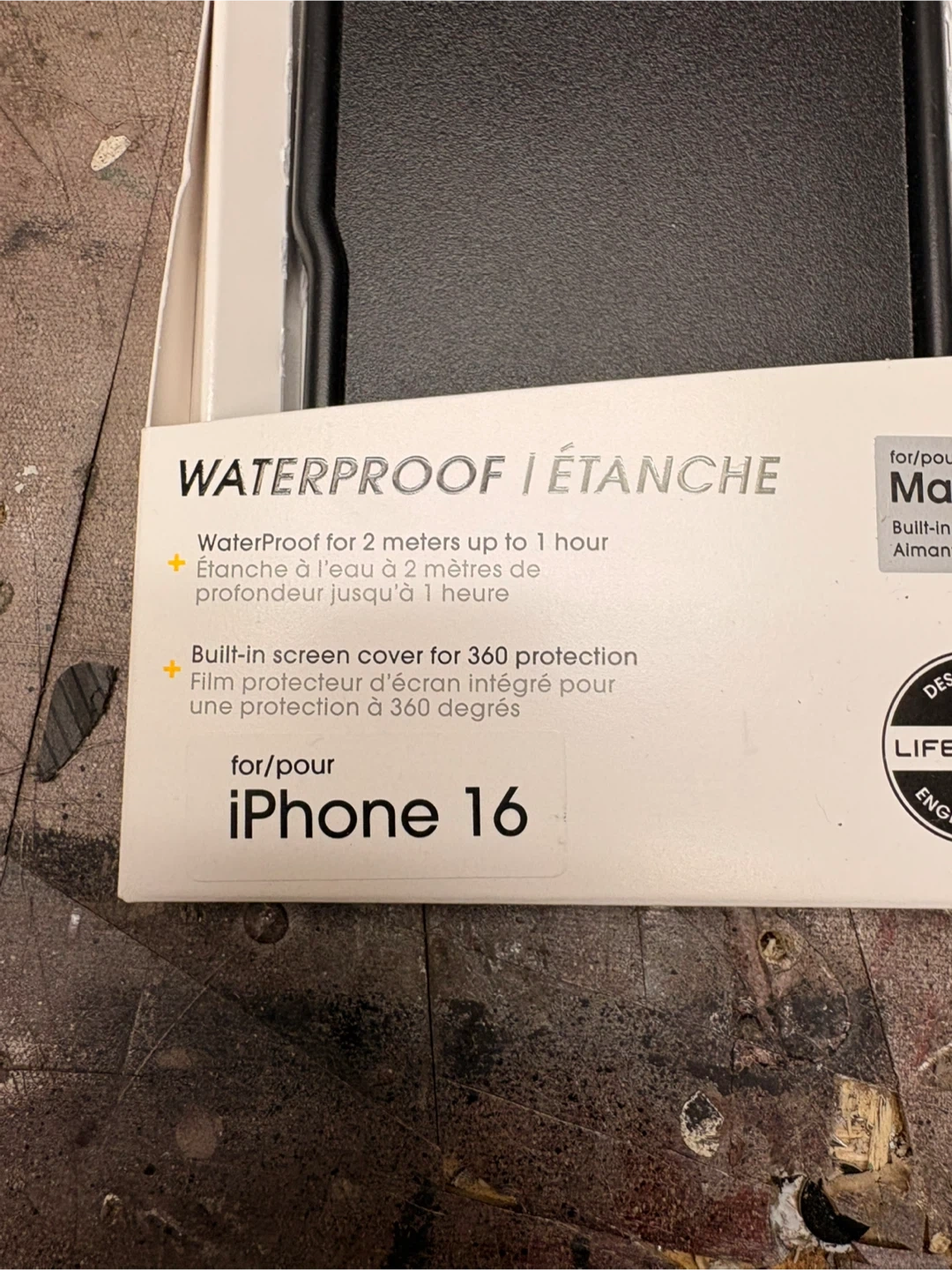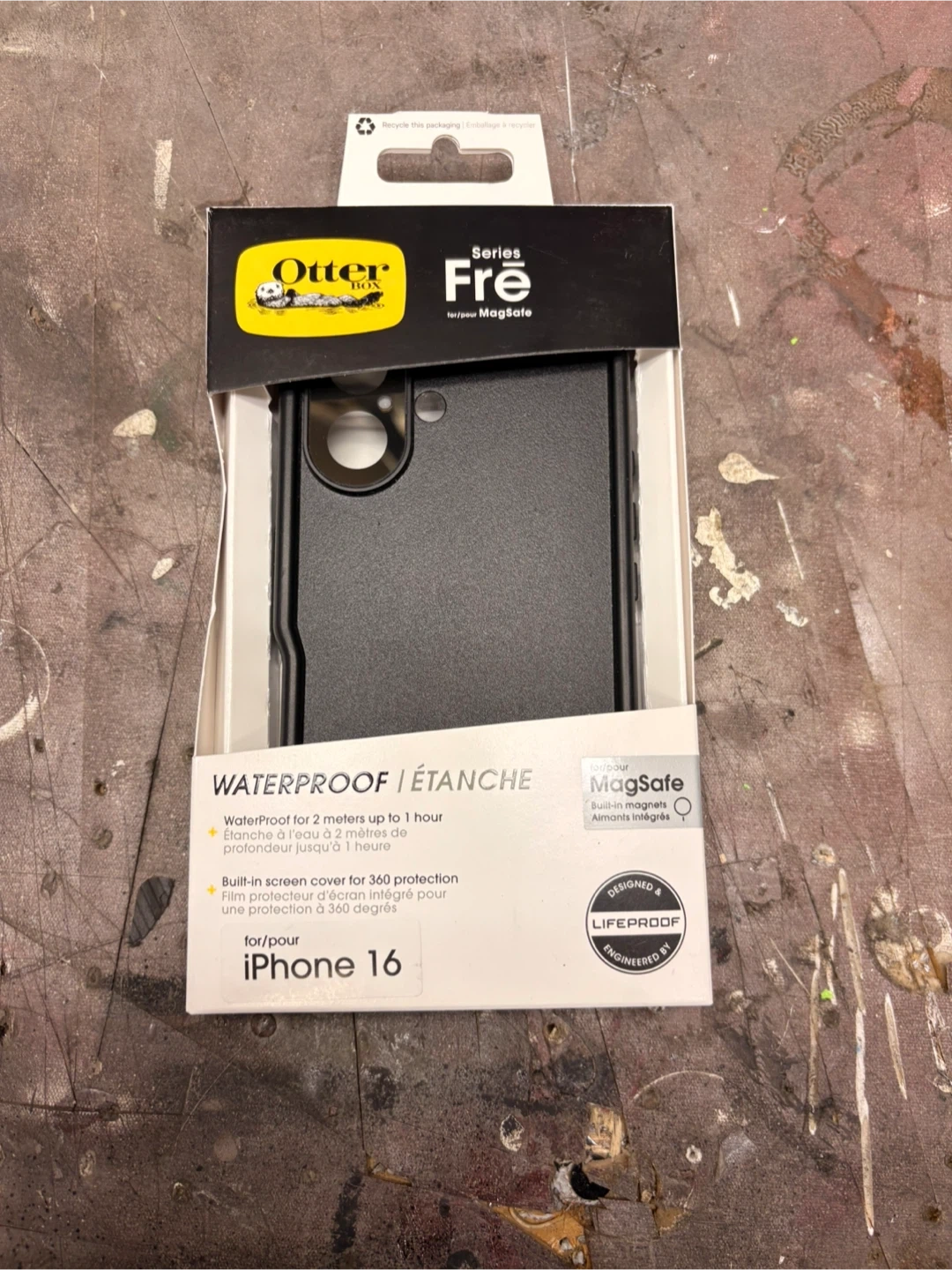 10Selling a brand new OtterBox Frē Series case for the iPhone 16! This case is waterproof for up to 2 meters for 1 hour. It also has a built-in screen cover for 360 degree protection, so your phone will be safe and sound
