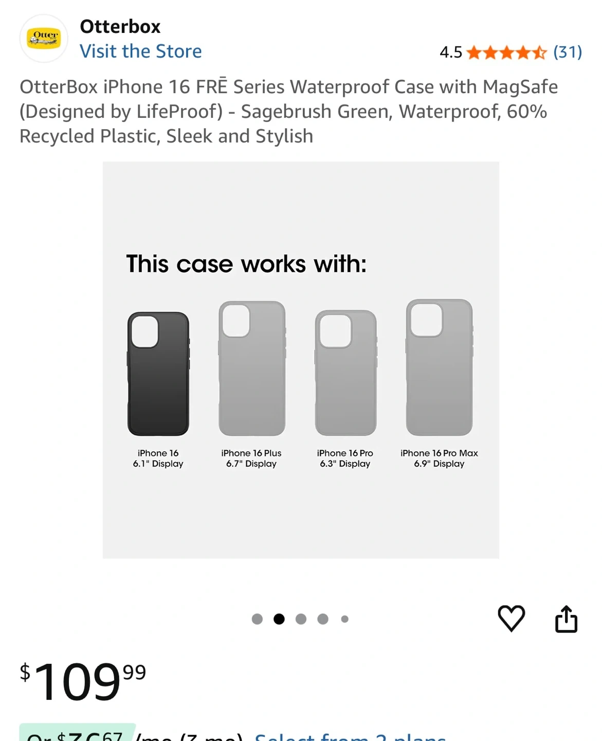 73Selling an Otterbox FRĒ Series waterproof case for the iPhone 16 in sagebrush green! It's designed by LifeProof and made with 60% recycled plastic. Sleek and stylish, it offers great protection for your phone. Waterproof for up to 2 meters for 1 hour. Originally bought for $109.99. Comes with the original box