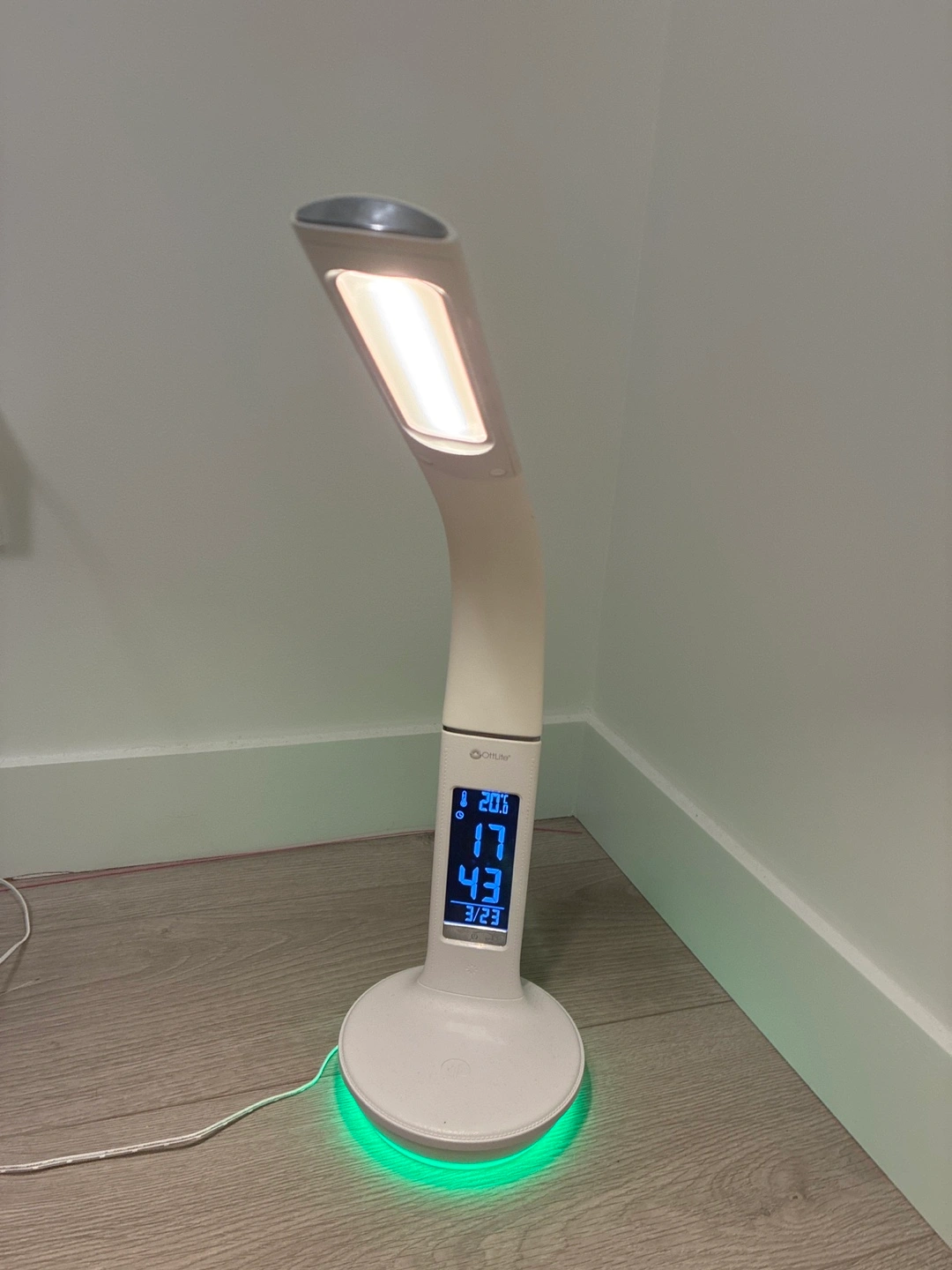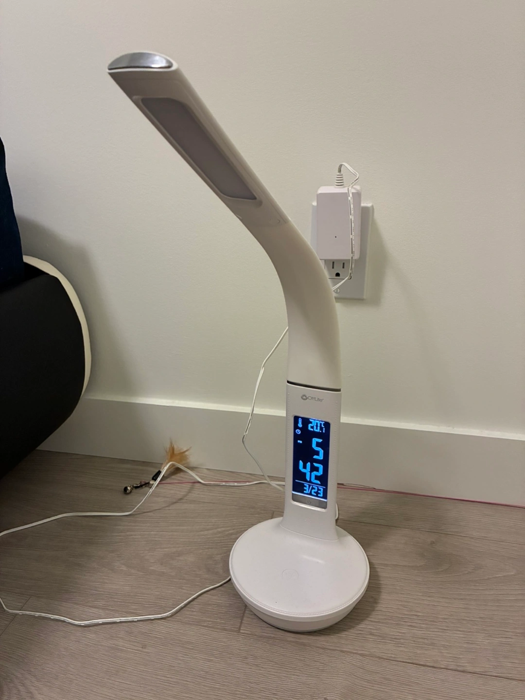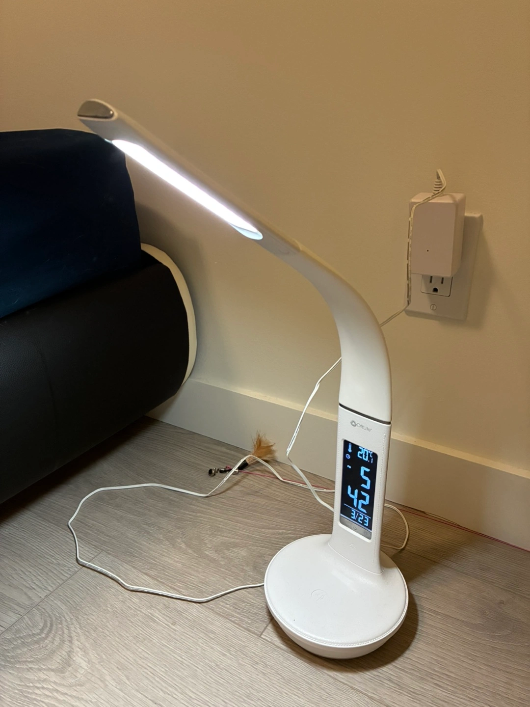 81Flexible gooseneck design. LED light. Digital clock displays time and temperature. Plus wireless charing is availble. Power adapter included. Great for studying or working.