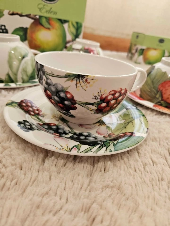 4 breakfast cups and saucers