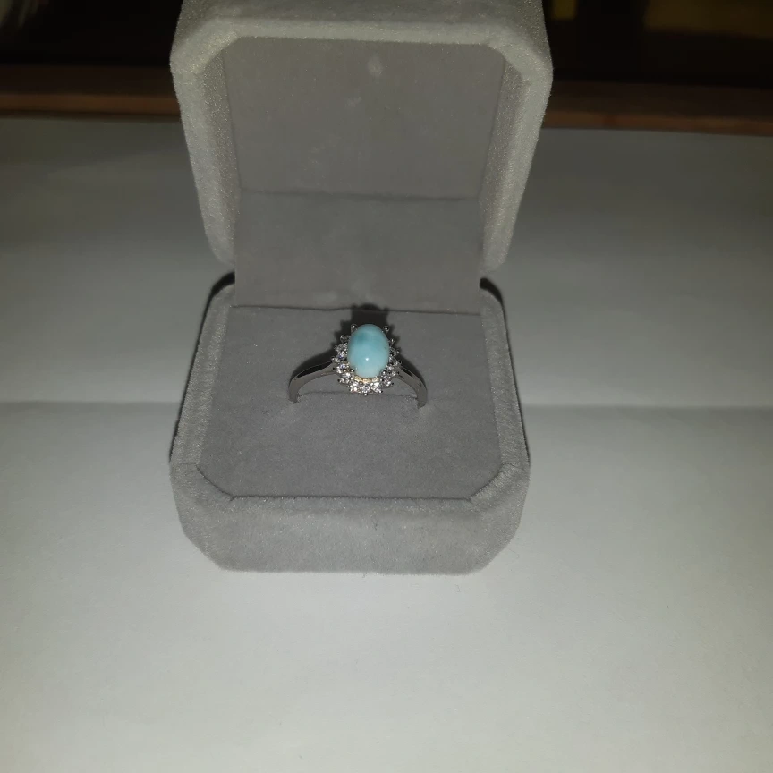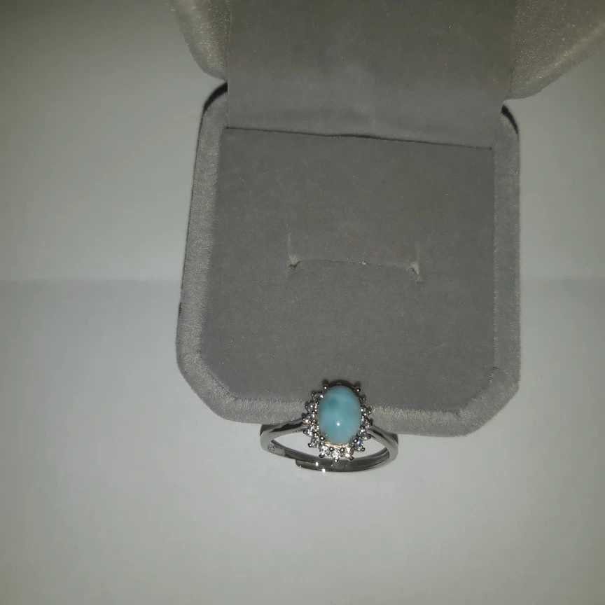 Polished natural Larimar stone s925 Sterling silver ring with box.Larimar stones only found in the Dominican Republic $55.00.OBO.