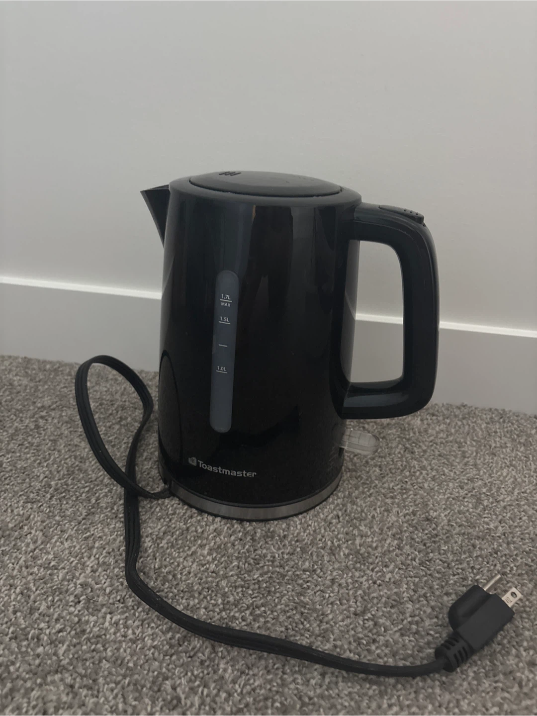 Buy & SellToastmaster Kettle - BlackToastmaster Kettle - Black$15Selling a Toastmaster kettle in black! It's in great shape and ready to boil water for your tea or coffeeConditionNewBrandToastmasterWHERE TO MEETCheck LocationView MapSELLERMuskanEvanston100 reviews0 chats·0 favorites·4 viewsSEND CHAT TO SELLERHi Muskan! I’m interested in your listing.Hi Muskan! I’m interested in your listing.Get the Karrot app to chatSign In to chat