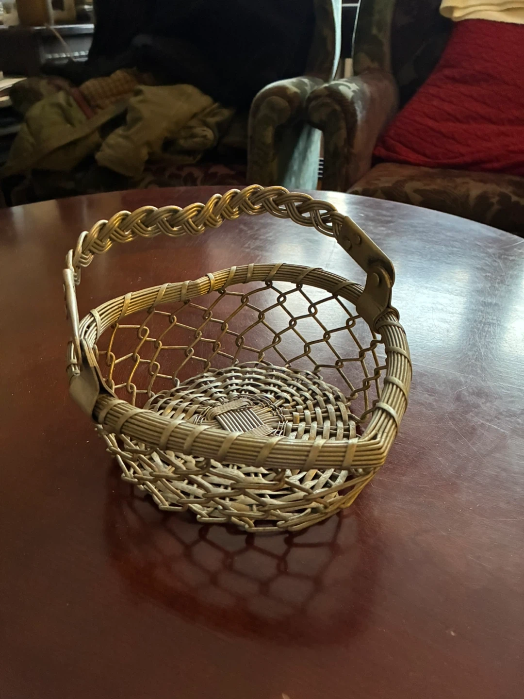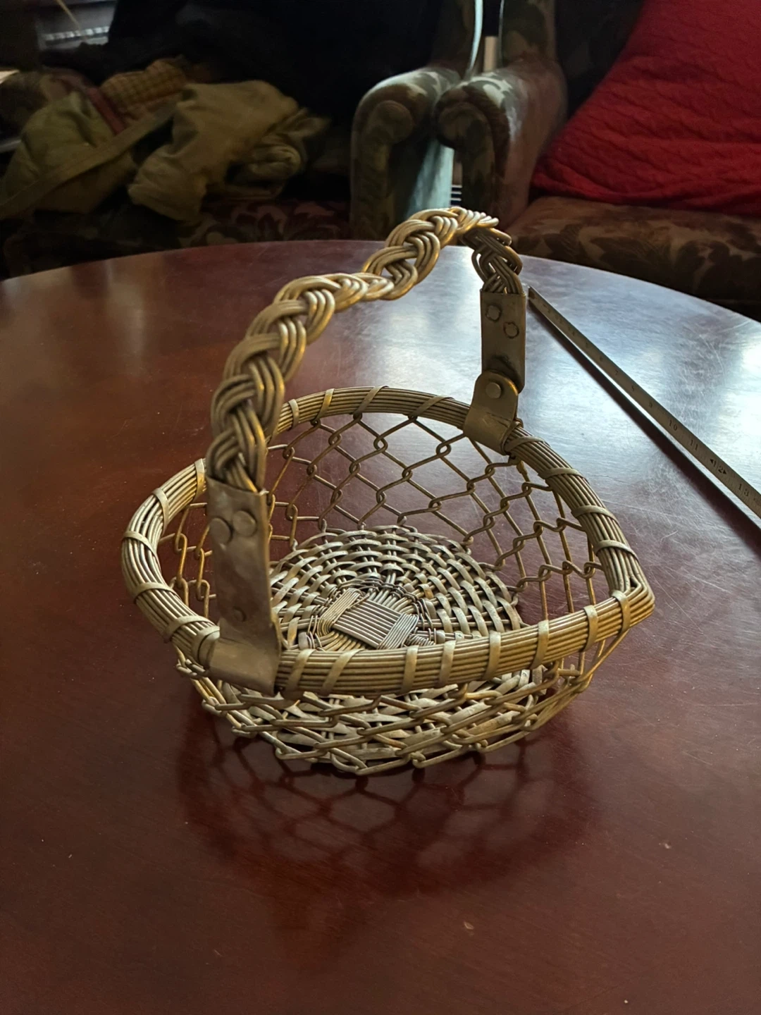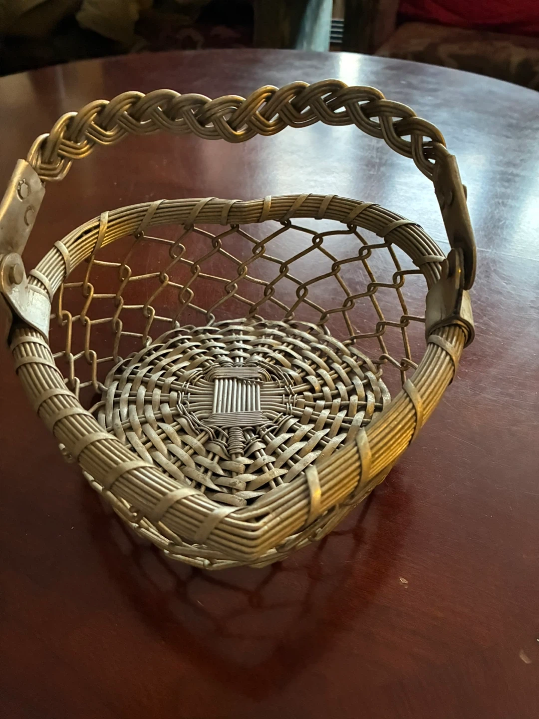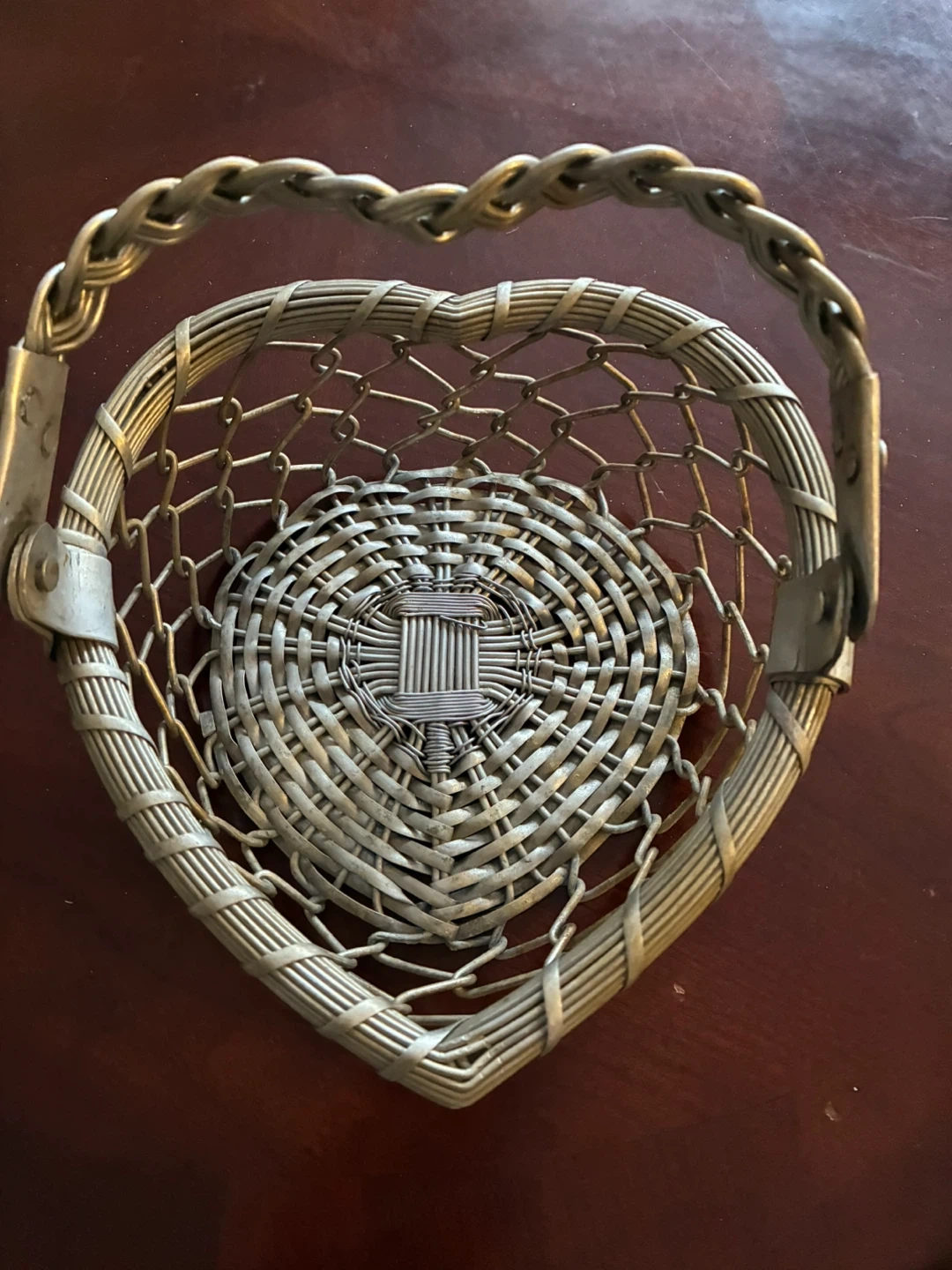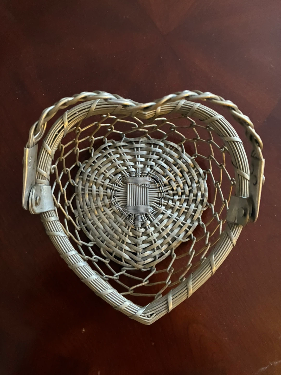 Like new heart shaped metal basket with handle