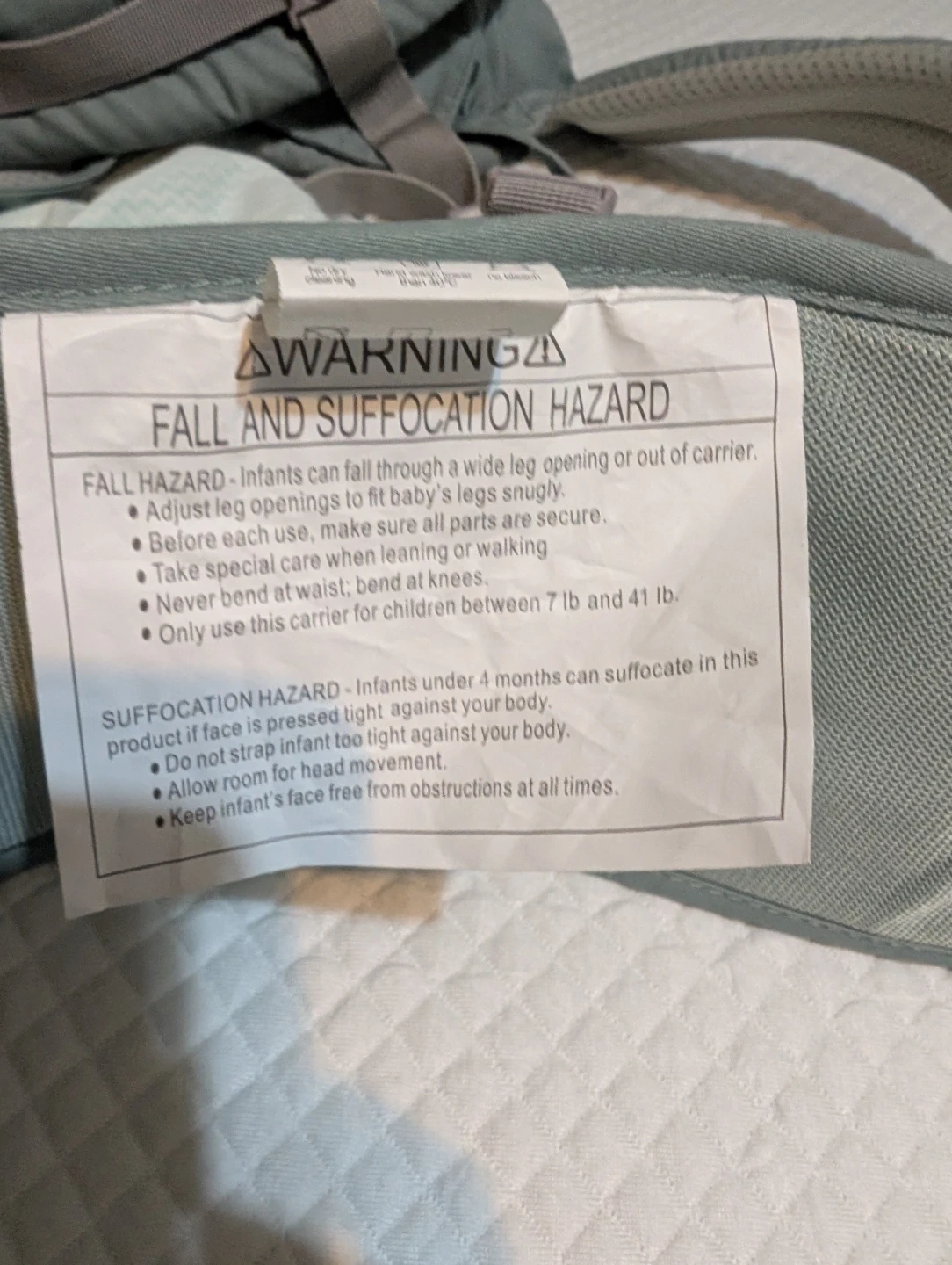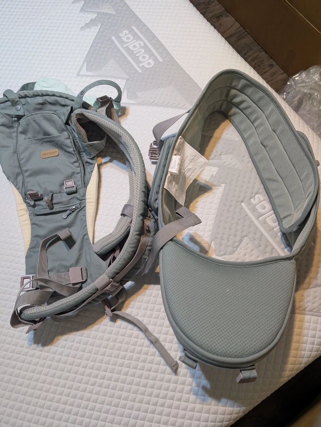 Selling a FRUITEAM baby carrier in great condition! It's suitable for children between 7 lb and 41 lb. This carrier is designed to ensure your baby's safety and comfort while you're on the go