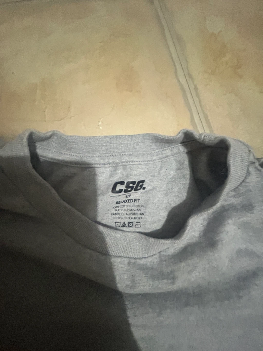 Grey CSG. t-shirt with a relaxed fit. It's made from 100% cotton. Manufactured in Pakistan. A comfortable everyday tee. Never worn also comes in a black if you want that hit me up