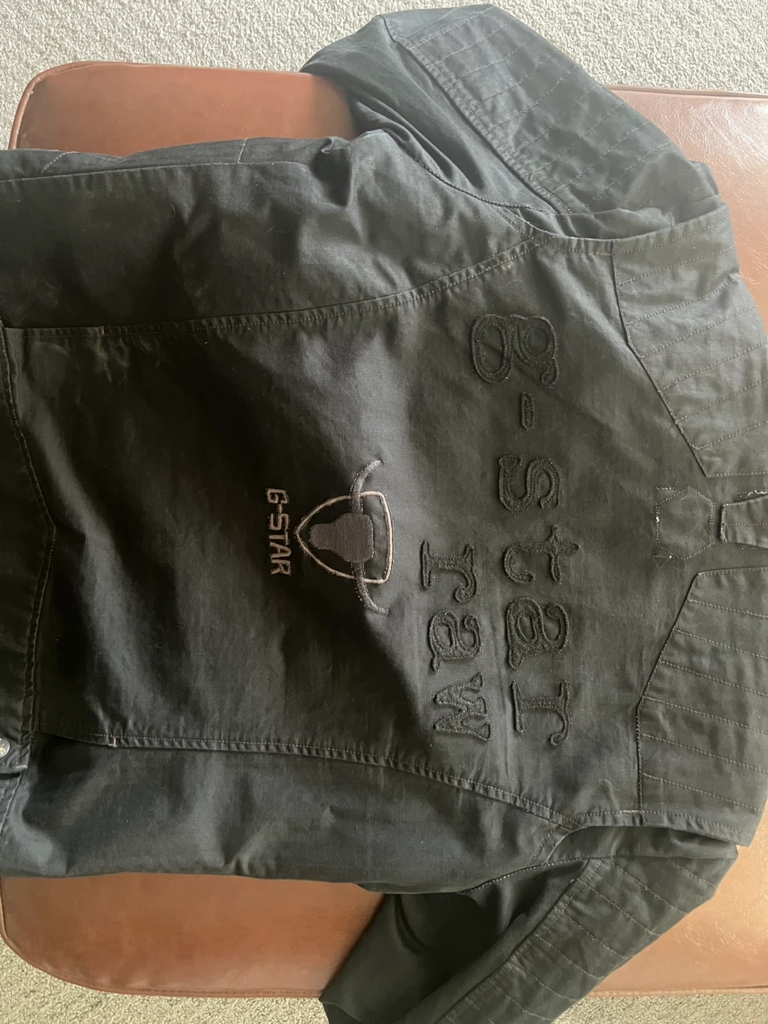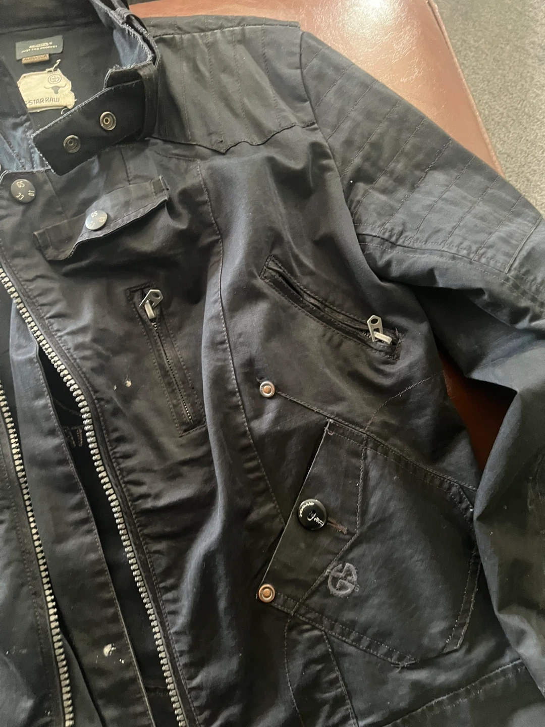 Selling a G-Star RAW black jacket in size M. It's a stylish jacket with a unique design and the G-Star logo. Overall it's in great condition and ready for a new owner!