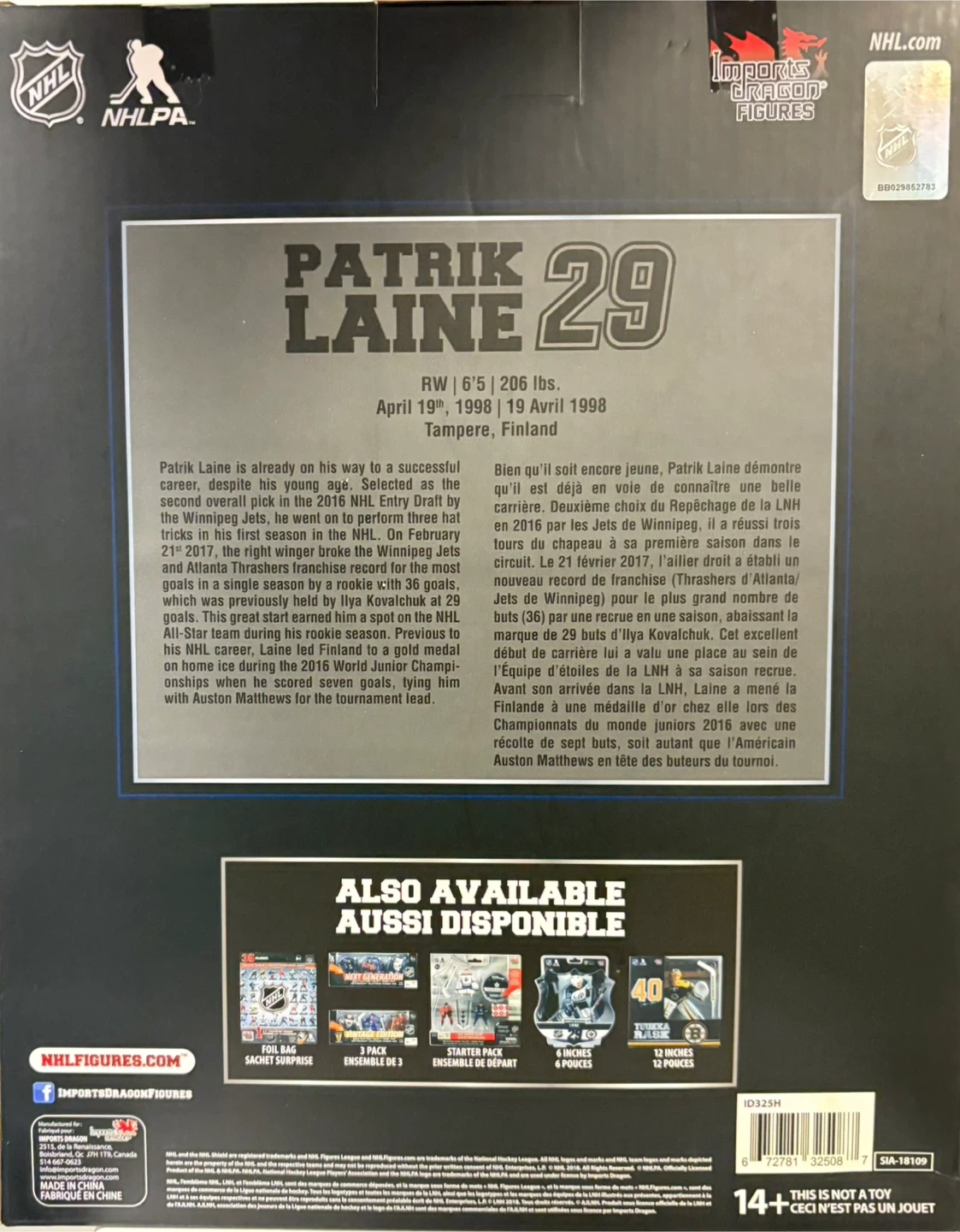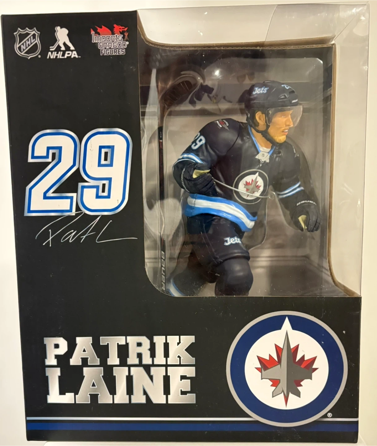Up for grabs is a Patrik Laine figurine from Imports Dragon! This figure features Laine in his Winnipeg Jets jersey. It's still in the box and ready for a new home. 12 inches.