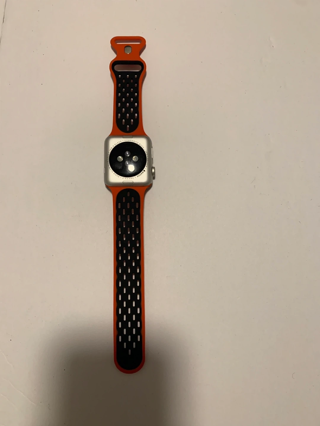 Selling an Apple Watch Series 3 with a 42mm aluminum case! It has a composite back and Ion-X glass. The watch comes with an orange and black band.