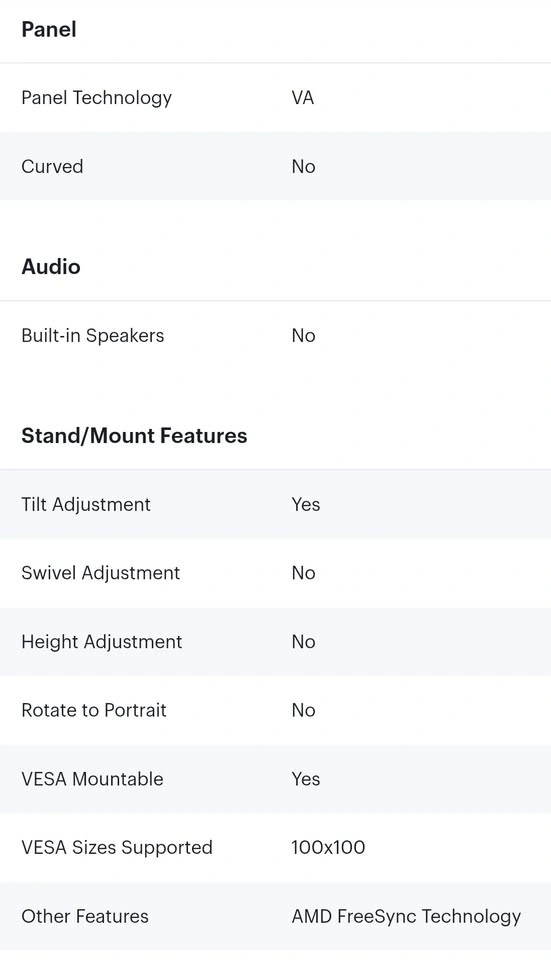 - VESA mount compatible