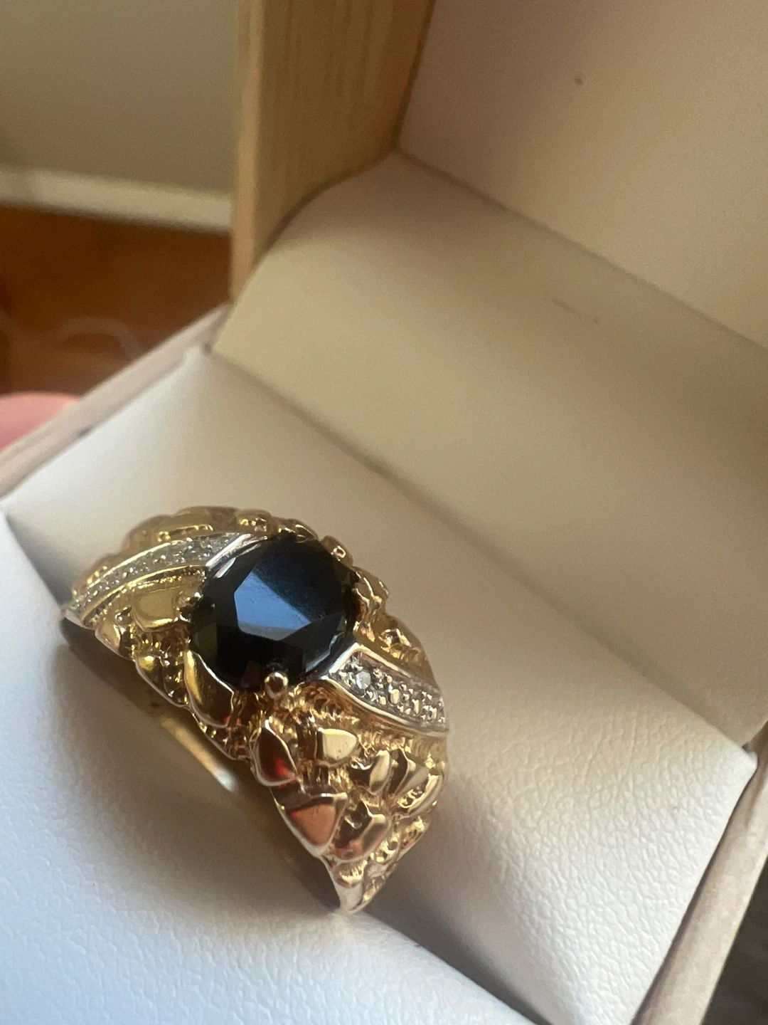 10K Yellow Gold Onyx and Diamond Ring