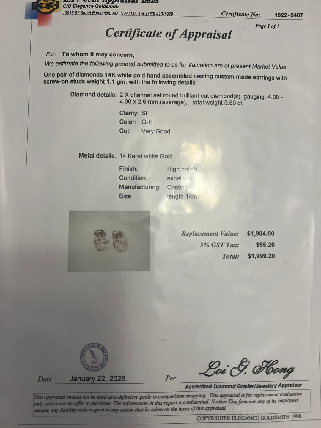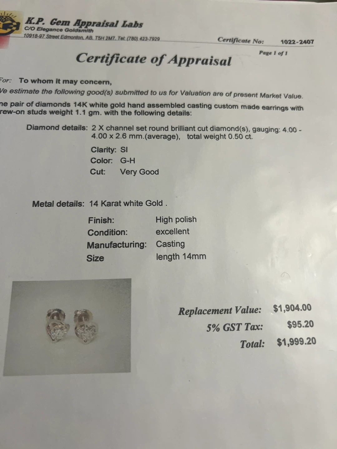 Selling a pair of 14K white gold stud earrings with diamonds 0.50 ctw . They are in great condition and ready to add a touch of sparkle to your look
