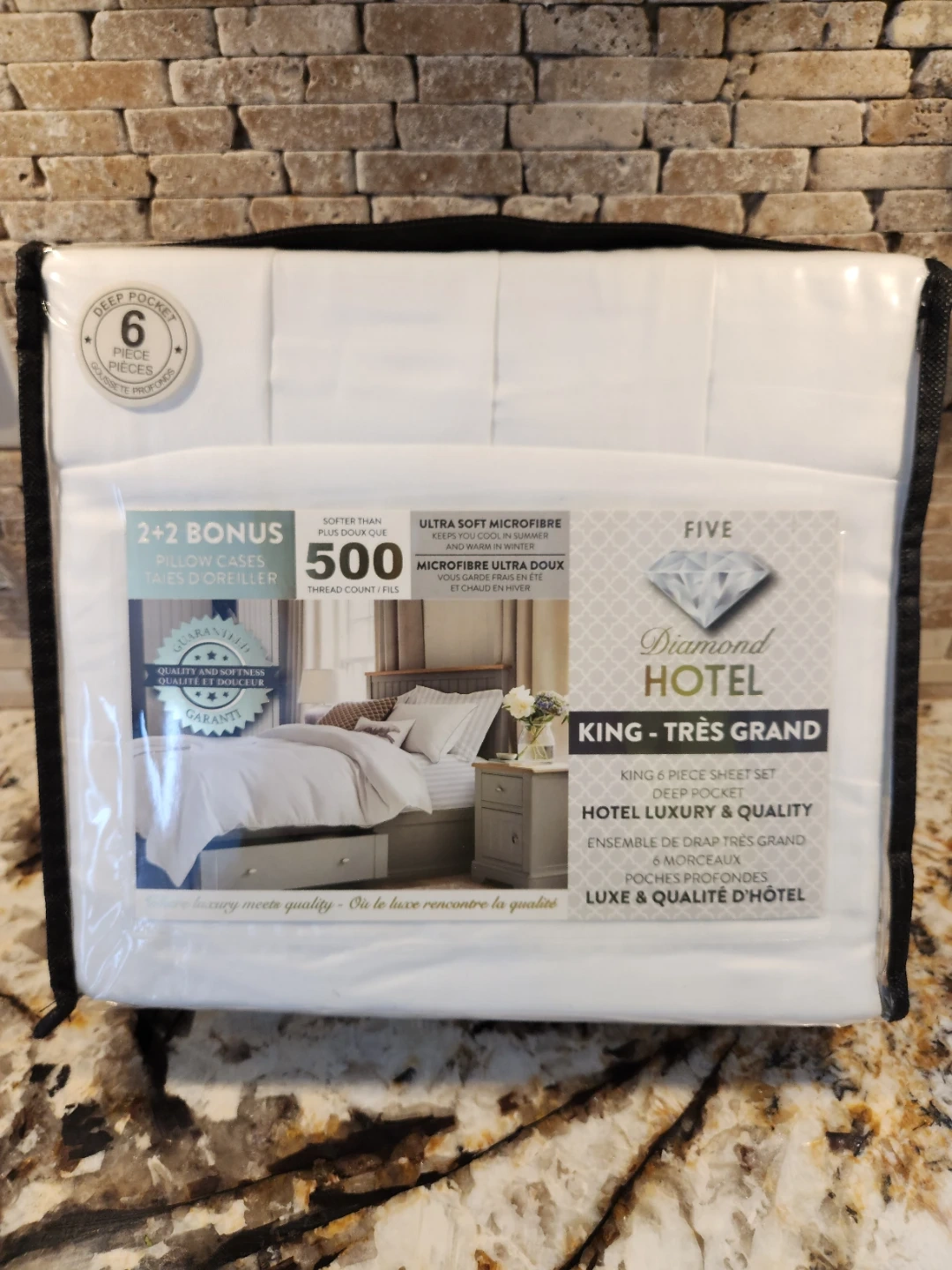 Selling a brand new Diamond Hotel King size 6-piece sheet set. This set includes: