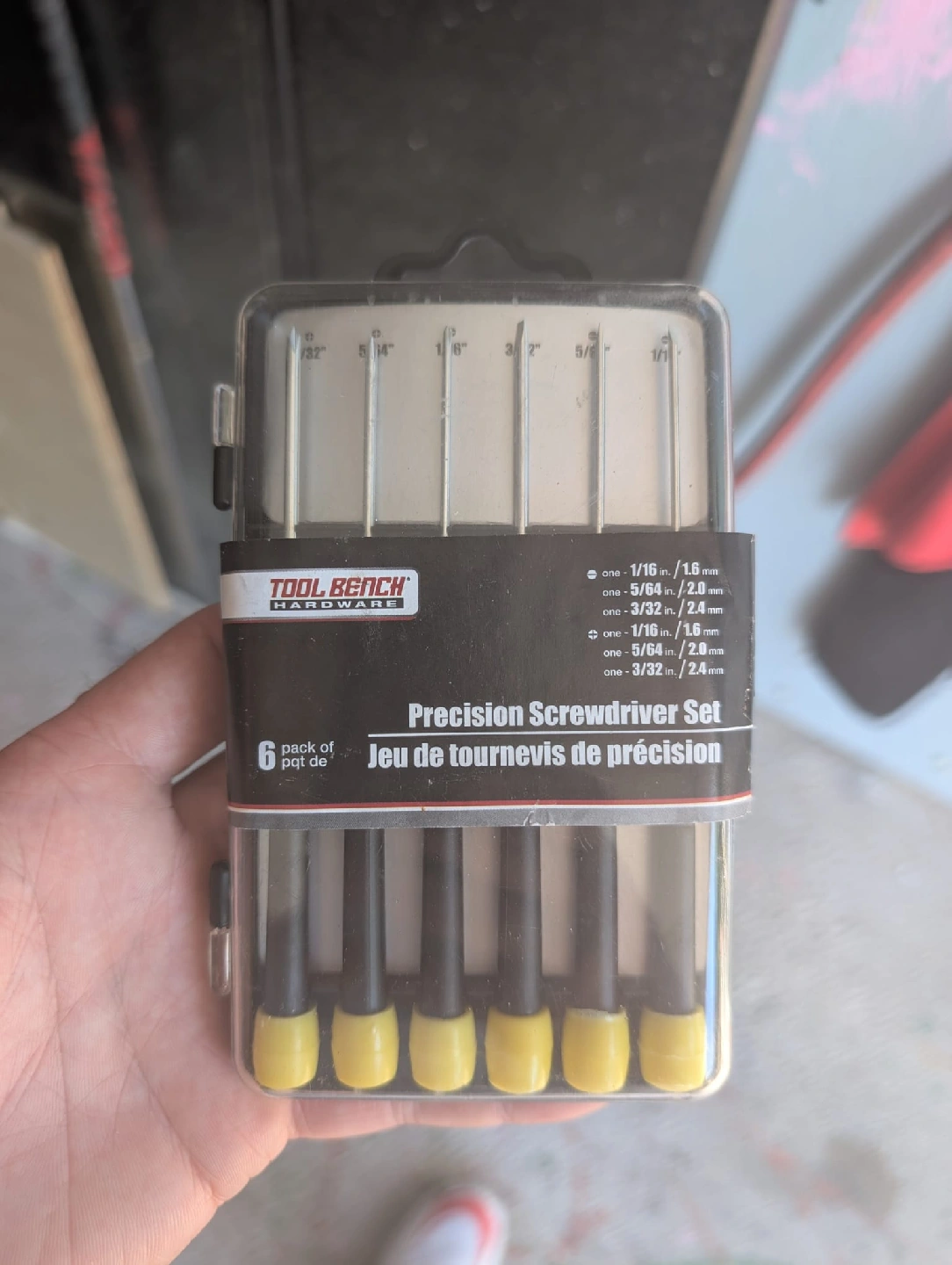 Tool Bench Hardware Precision Screwdriver Set with 6 pieces. Includes the following sizes: