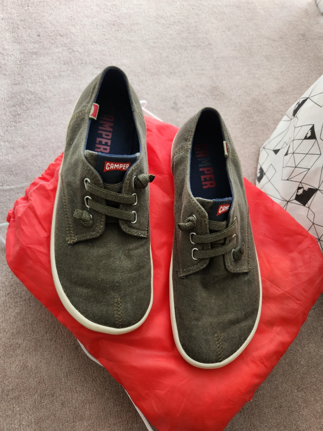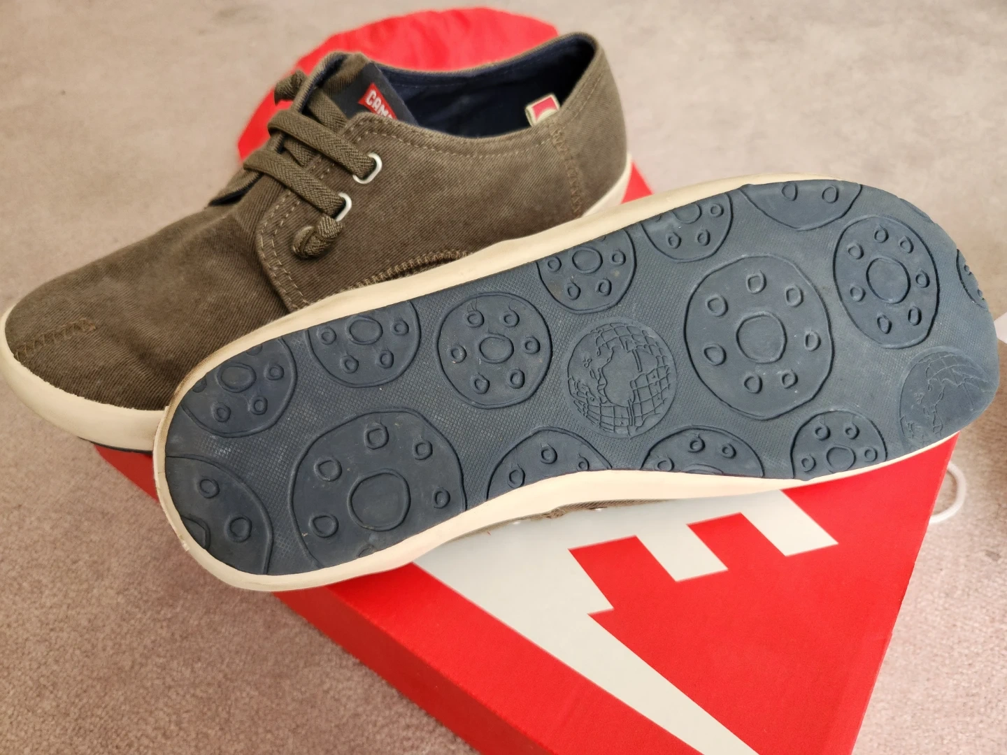 These Camper sneakers are made from a durable canvas material. They feature a lace-up closure and a comfortable rubber sole. These shoes are great for casual wear. Worn once