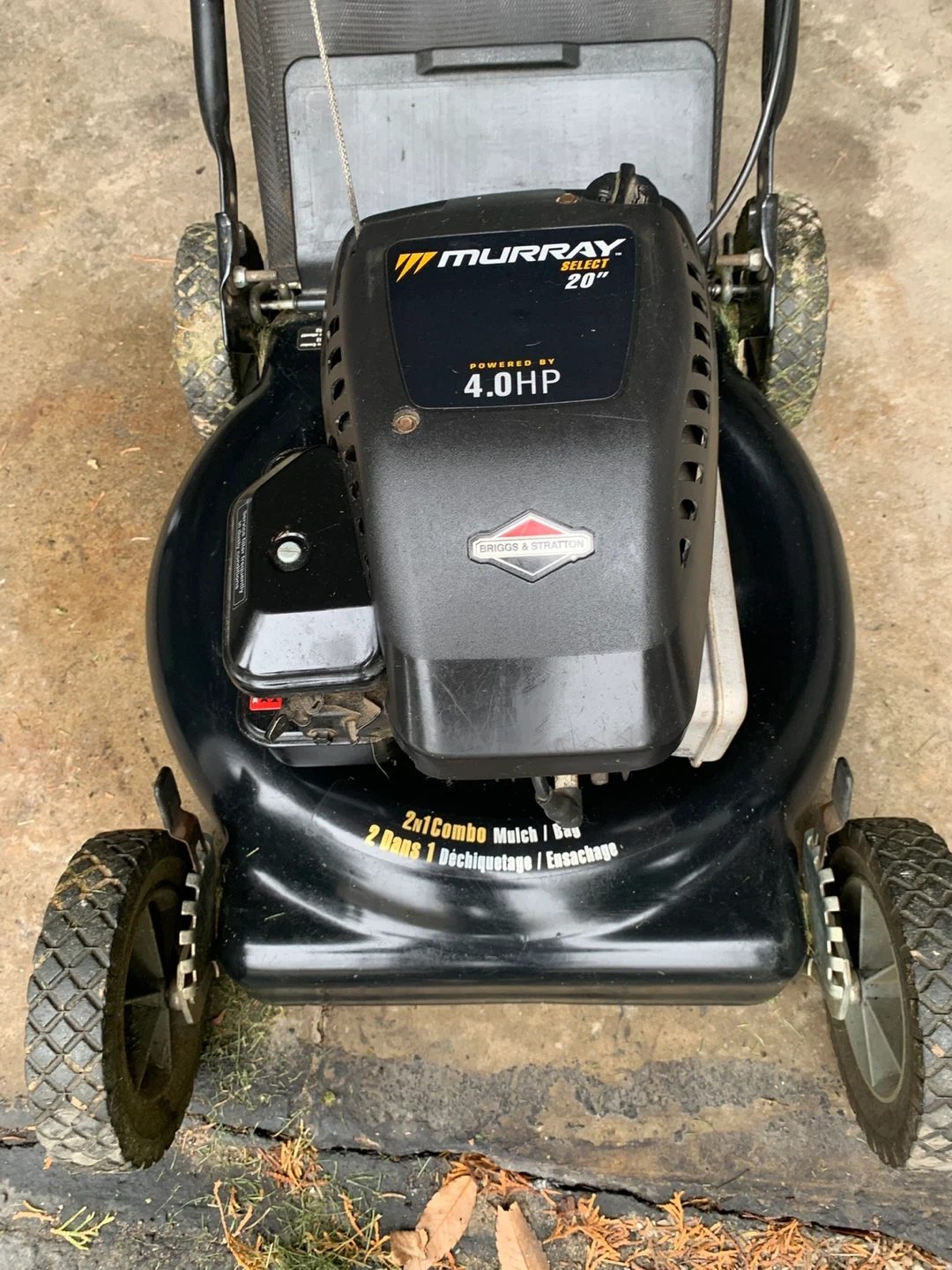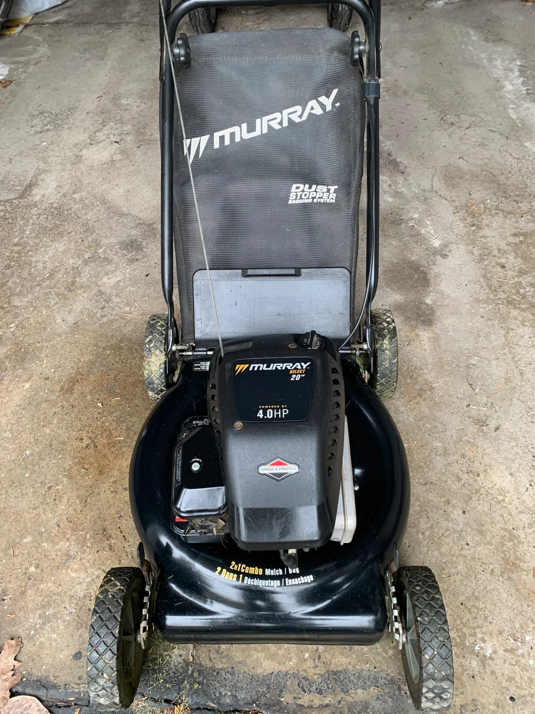 Murray 20-inch lawn mower powered by a 4.0 HP Briggs & Stratton engine. It offers 2-in-1 mulching and bagging capabilities. Great for keeping your lawn tidy!