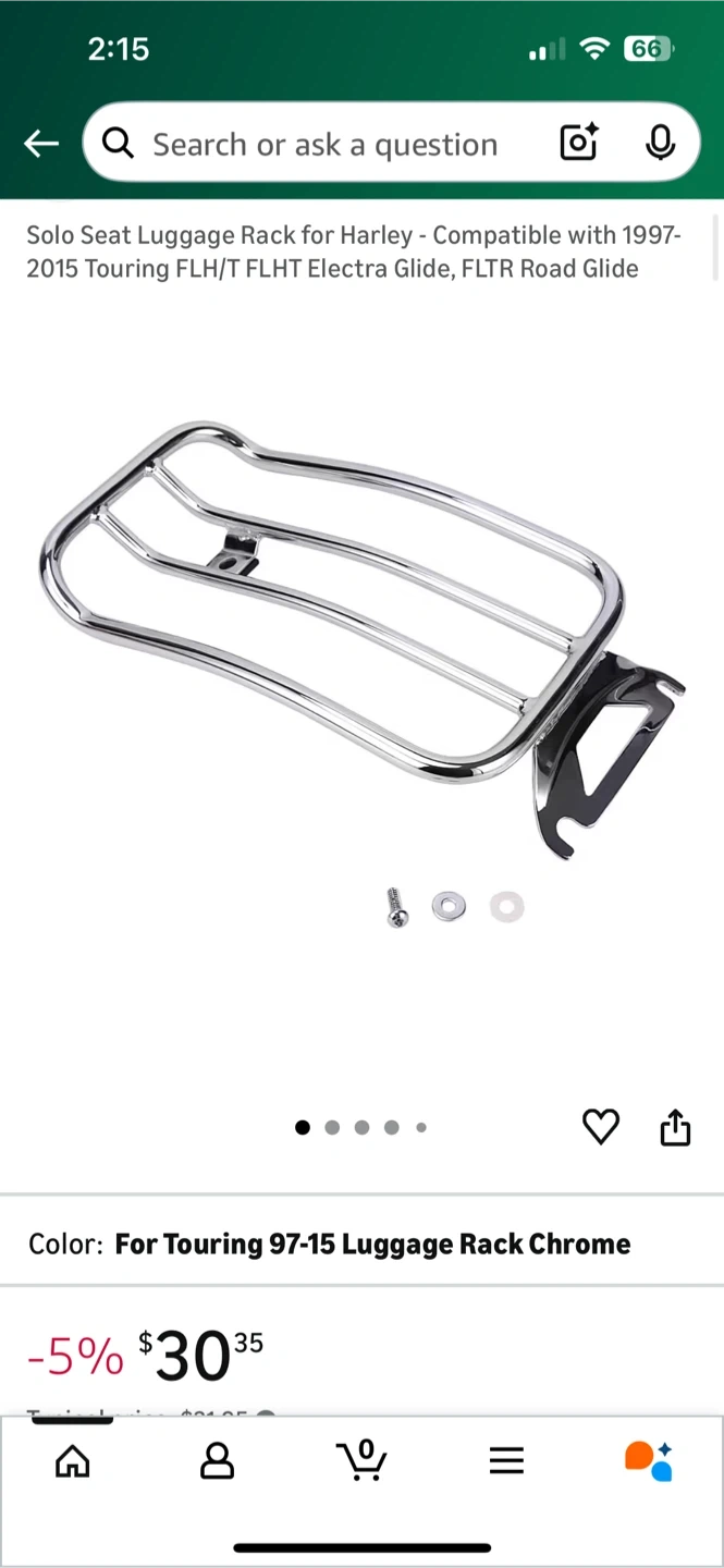 88Selling a solo seat luggage rack by Oumurs, designed for Harley Touring models from 1997-2015, including FLH/T Electra Glide and FLTR Road Glide! The rack is chrome and measures approximately 13.45" (35cm) in length, 7" (18cm) in height, and 4-1/9" (10.5cm) in width